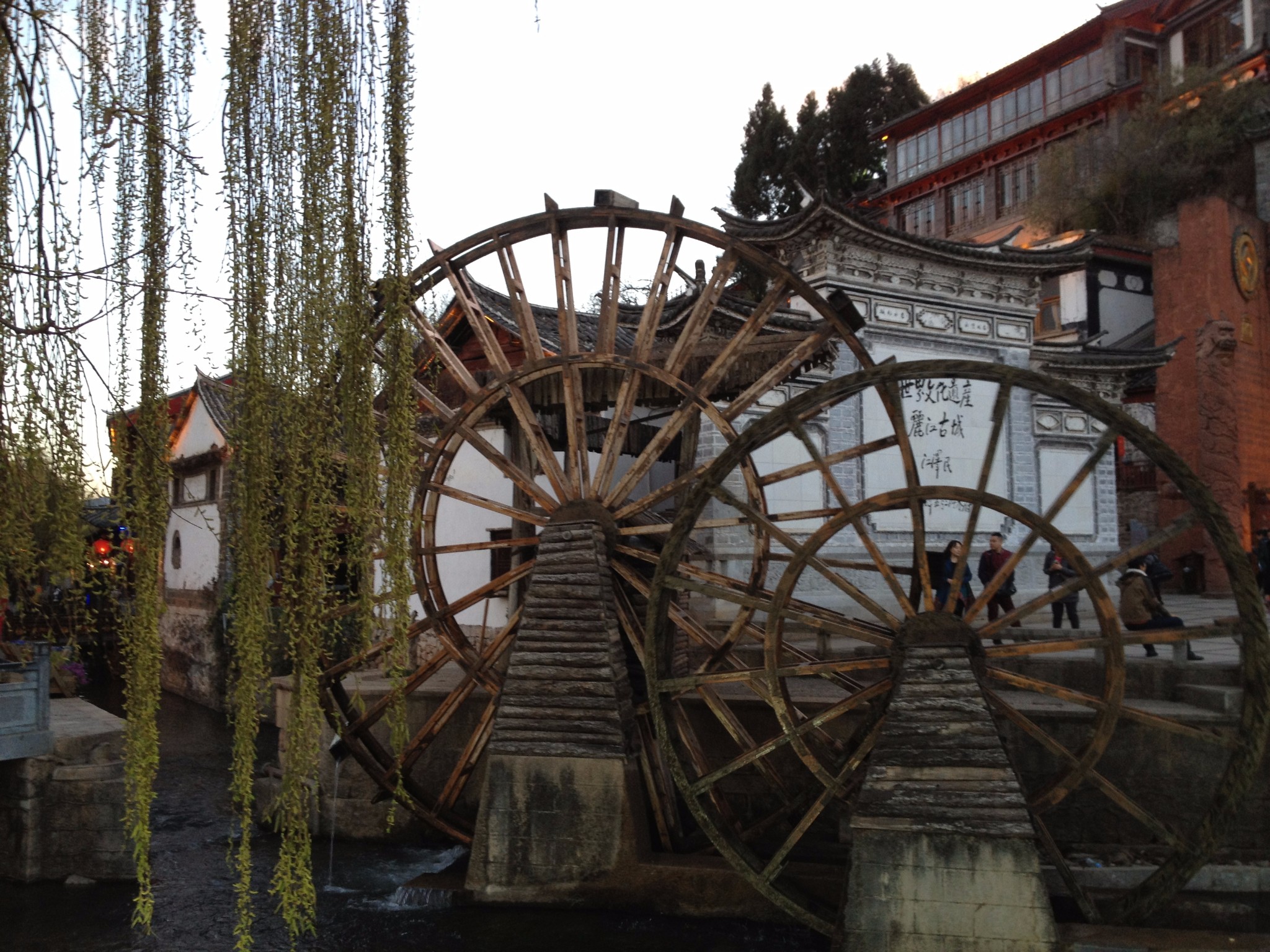 这个大水车应该不陌生吧?从大街上拐进来,右手边就是丽江古城的标志大水车!从这往里,古城的风貌逐步展开。