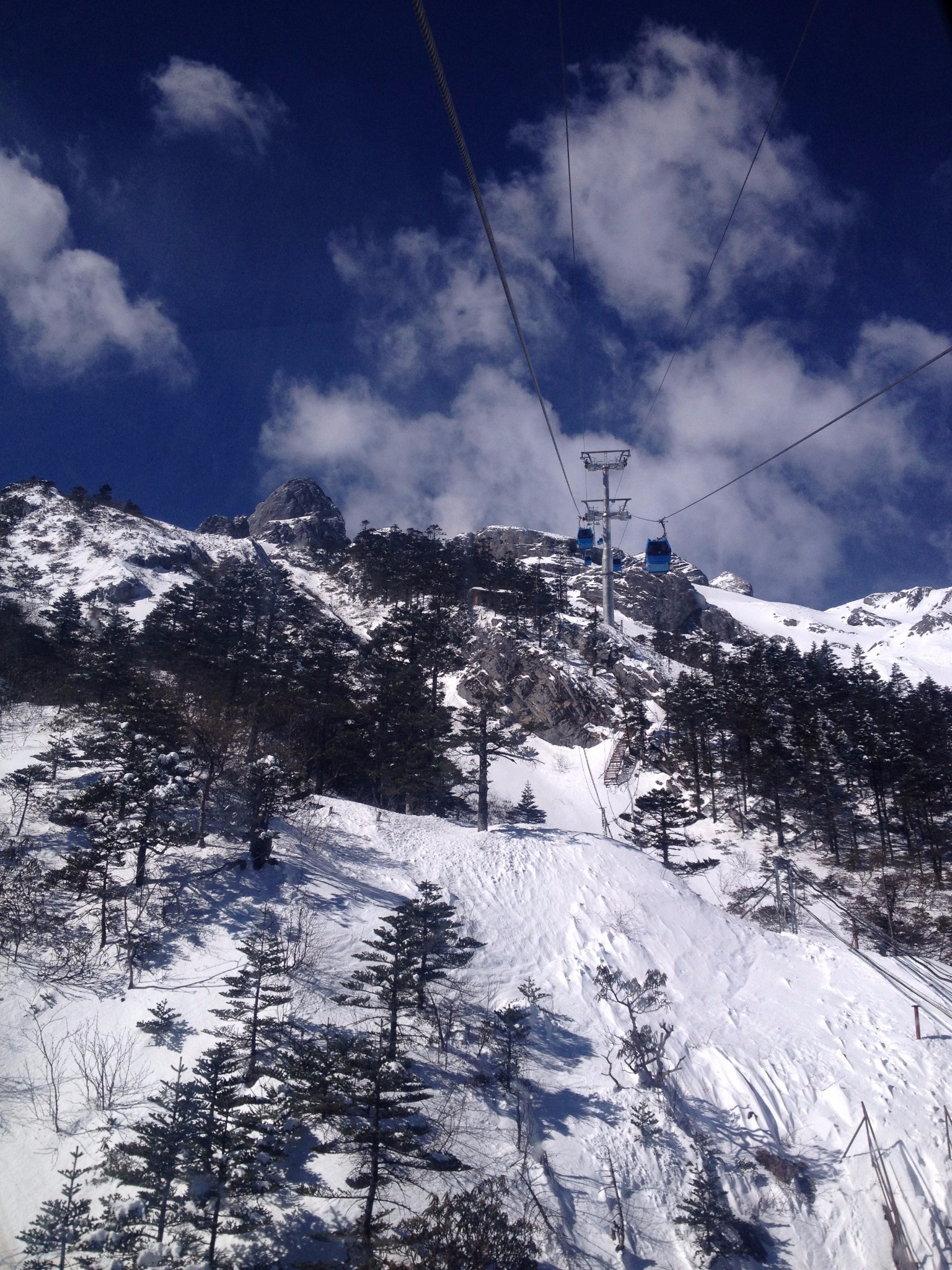 索道开通了,我们成了雪后第一批上山的观光客,从缆车望出去,银装素裹分外妖娆。