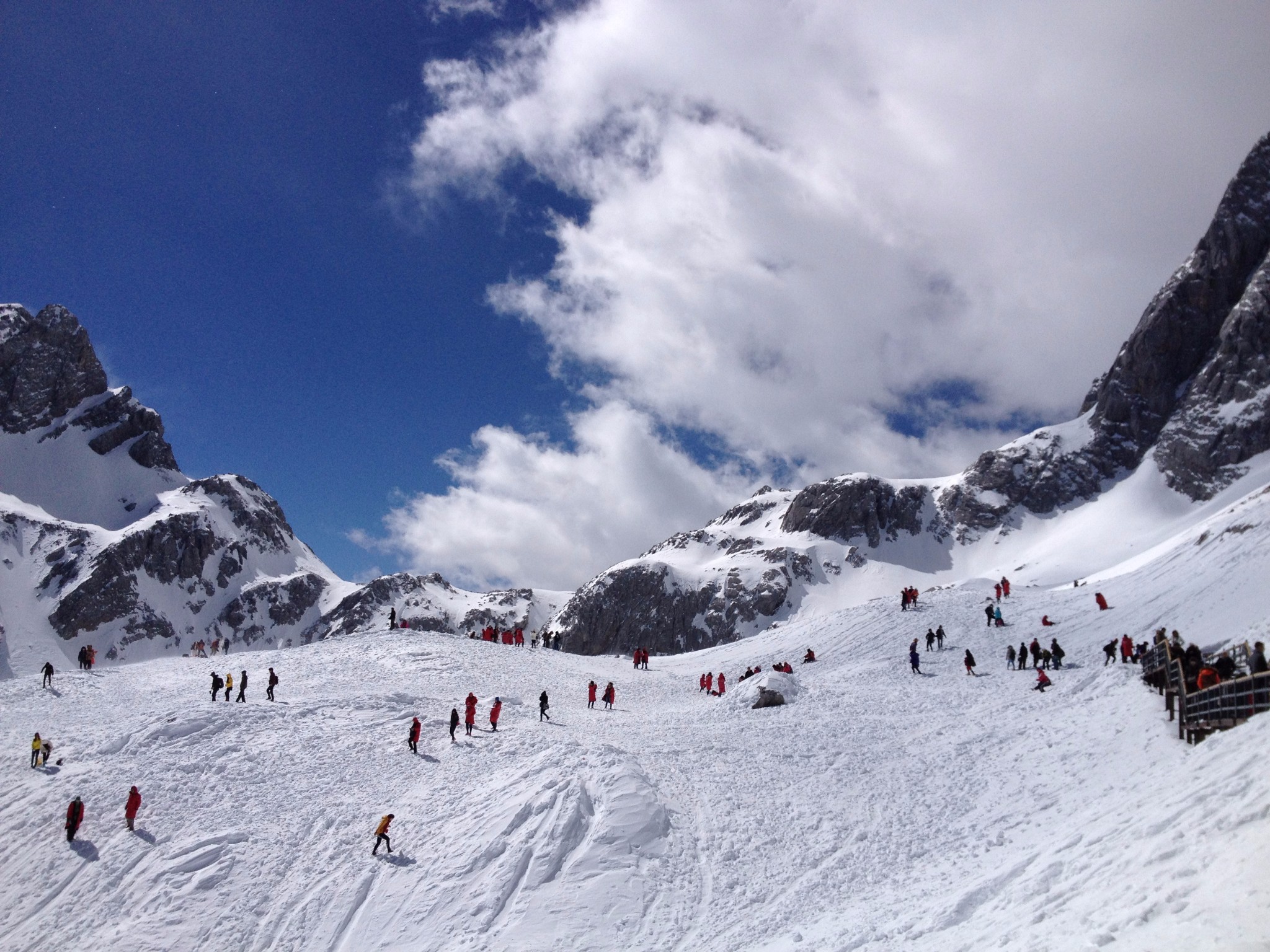 虽然是雪山,但这些年随着环境变化,能看到雪的时候并不多。如此壮观的雪景,属实让人叹为观止,难怪周围不时响起惊叹声呢!