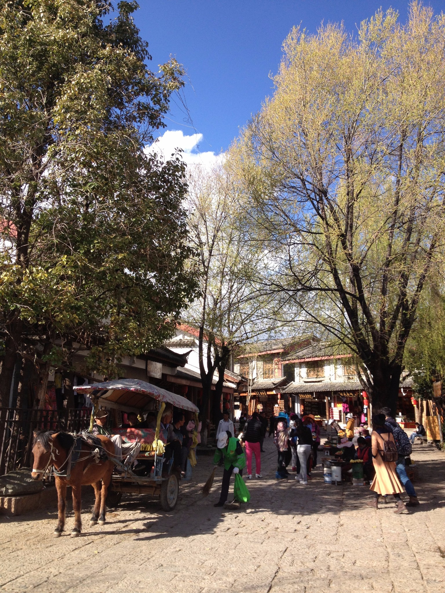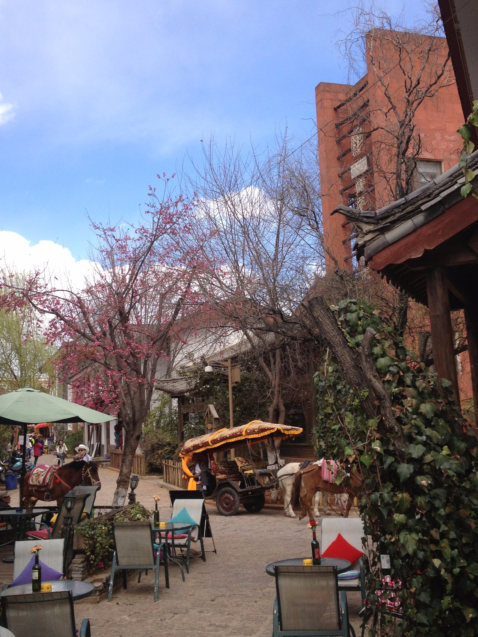 偶尔有观光马车踢踢踏踏的从眼前的石板路上走过,留下细碎的马蹄声,带你走进古镇的旧时光。