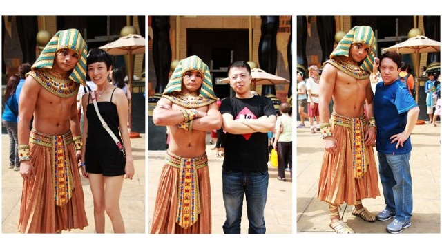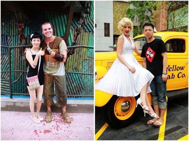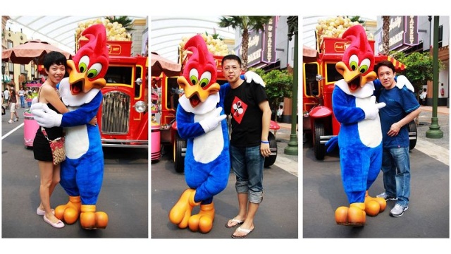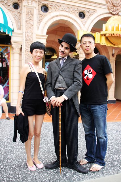 上午玩的还算有计划,吃过午饭后“男佣吉姆斯”频频喊热喊累,三个人开始了漫无目的的游逛,赶上什么看什么,赶上什么做什么,并频繁出入空调房。不过玩得也很开心,因为邂逅了很多喜爱的电影人物,穿破裤衩的功夫熊猫,讨喜的卓别林,性感的玛丽莲.梦露等等。