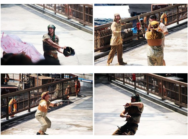 之后来到水世界近距离看了一场好莱坞海上枪战片儿,很享受。演员与观众之间的暖场互动让大伙着实开心了一回,真应了那句“你有什么不开心的事,说出来让大家开心一下”。观看这场SHOW最重要的是根据自己的喜好选择座位,最前排的蓝色区域为全湿区,中间的绿色为微湿区,最后面的则不会被弄湿。不过有着新加坡的好天气和赤道的阳光,害怕被弄湿吗?哈哈哈!