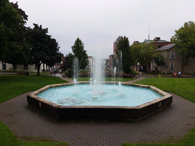 和欧美大多数小镇一样,这里的小镇表面上看也是与世无争的感觉,位于圣劳伦斯河北侧,靠近大湖与美加边境,有美丽的喷泉和完善的市政设施,沿河边逛会发现可玩耍的活动不少。而且这里还是公路铁路交叉点及圣劳伦斯河在安大略湖的出口,说的就是我们的兵家必争之地啦。