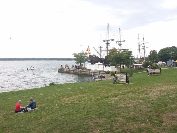 一家老小从多伦多出发,沿着401公路,即可一路往东前往蒙特利尔。家族中有小朋友才2岁不到,吃喝拉撒要照顾的事情不少,没法控制时间,周边景点也就随意走走,没有太强目的性。周末,我们8点30分从多伦多出发,开车大约2小时,一路沿着安大略湖往东边开,经过Kingston,在11点41分来到千岛湖,也就是这个叫布罗克维尔Brockville(就在蒙特利尔和多伦多中间)这个地方歇脚。原本也就是打算休闲地游千岛湖,后来不经意间发现这个地方埋藏了许多故事。