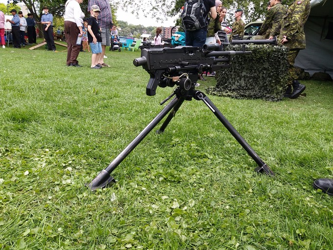 有位华侨端起了机枪。旁边一众军士也乐得与民同乐,说:“我们是为人民服务滴,大家随便问随便耍,反正卸了弹匣保证安全,群众爱玩就好“