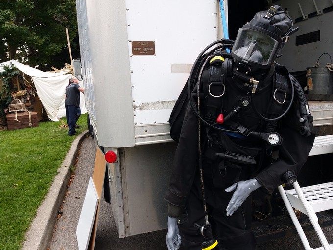 海军把潜水装备搬出来啦,话说这种装备需要很完善的保养体系,尽管看起来已经很复杂了,但还不能潜太深。海军真是技术活