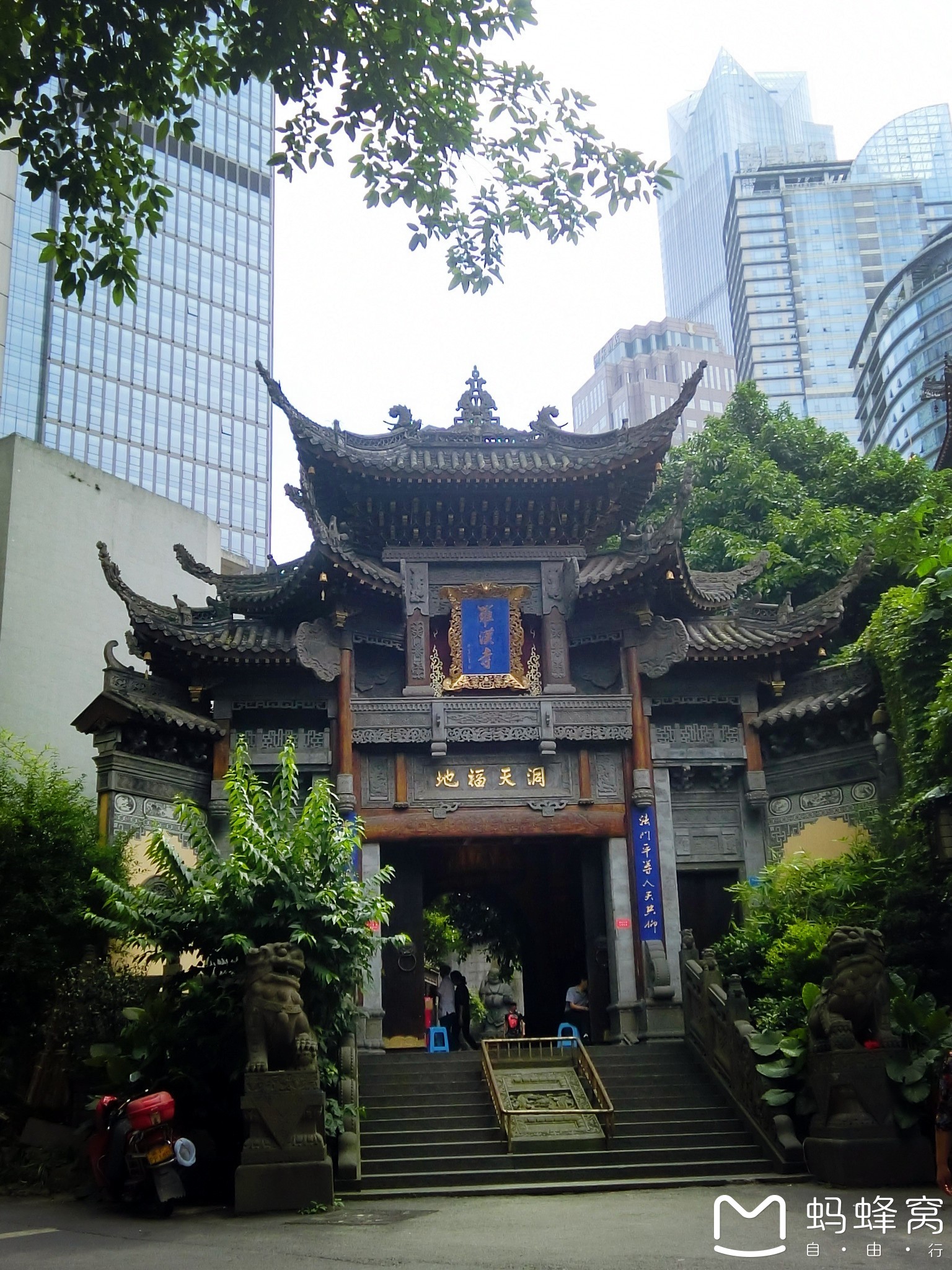 看过《疯狂的石头》的人都知道,电影中的故事就是说发生在里。这座小小的寺坐落在渝中区民族路,面积不大却因为电影的原因辨识度极高。周围尽是高楼林立,与他浓厚的文化色彩相辉映。和电影中一样的是,寺中的满是年久失修的模样,年代感极强,也许这就是他的本来的气质吧。