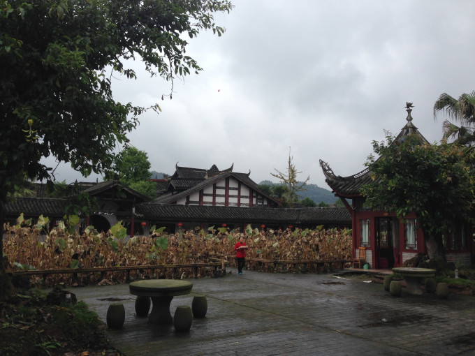 早晨我们8点半在鸳鸯出发,一路堵车到达大足已经是中午了,吴姐带我们到大足的荷花山庄吃午餐。大足荷花山庄位于距大足城区5公里,近邻著名的世界文化遗产大足石刻宝顶山风景区,占地面积1520亩,其中水域面积1000多亩,是一个以莲荷文化为特色,集游览、休闲和饮食为一体的星级农家乐。在山庄的北面是一条数百米长的仿古民俗文化街,化龙河与其余三面相连相依蜿蜒曲折。在荷花山庄,不但可以欣赏到荷塘美景,还可以品尝到独具特色荷莲美食,包含荷花鱼、荷叶粉蒸排、荷叶粉蒸肉、荷花龙段、荷剑炒排、香荷肉片汤、荷剑炒蛋、蜜汁莲藕、香酥藕夹、软炸荷花、荷叶香粥等菜品。荷花山庄是当地人休闲娱乐的好去处。尤其是夏天坐在凉亭里,吃荷莲大餐,赏荷花美景,何等愉悦