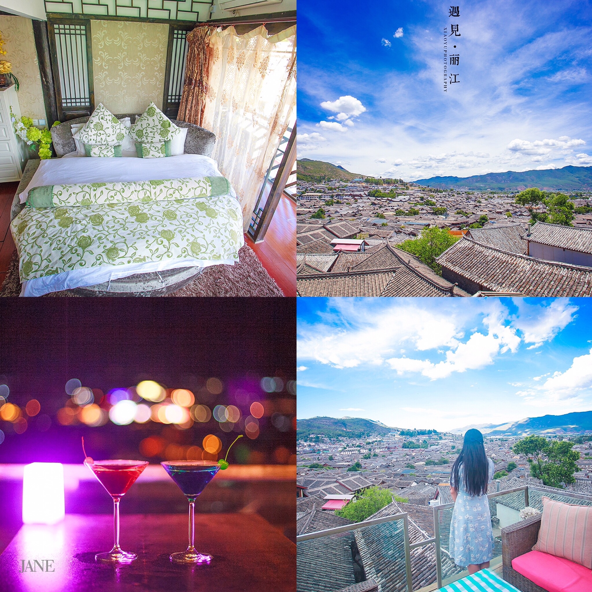 住的是小清新的田园圆床房,房间里有落地玻璃,早上醒来就是古城全景。非常喜欢这家客栈。后来去了丽江好几次,还住过他家的另一个店。
