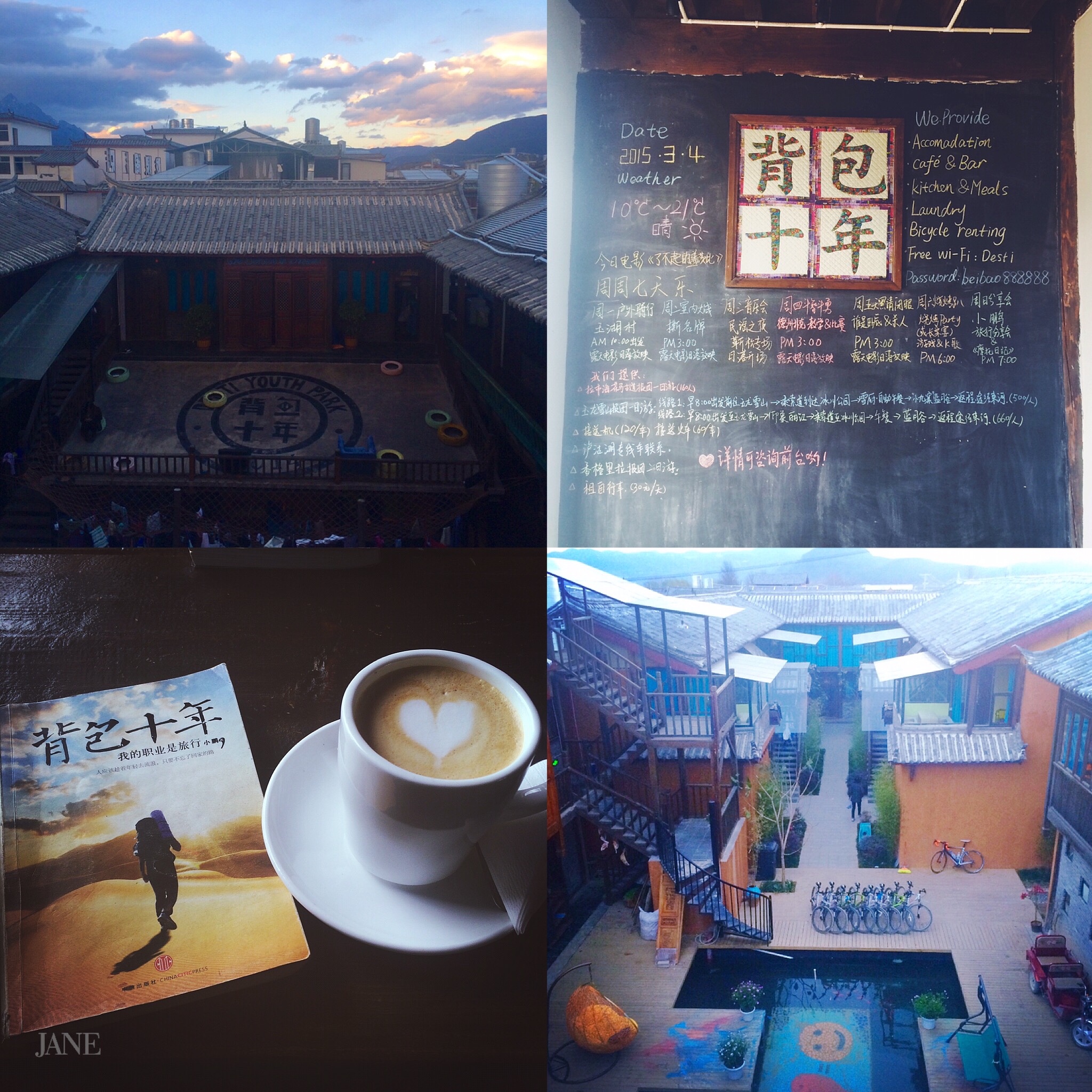 这个是名博@背包客小鹏 在束河开的青年旅舍,是因为好友是他的粉,我才陪她去住一晚的。我个人不太爱住青旅,这个每个人的旅行习惯不一样。这间客栈每天晚上都会有不一样的活动,比如露天电影,篝火晚会,周末组织骑行等等,还有比较大的书吧咖啡吧,喜欢青旅的小伙伴们应该还是会觉得不错的,我个人是无感啦,性价比觉得一般般。