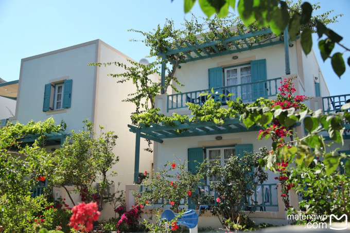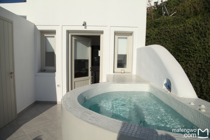伊亚的奢华酒店,悬崖酒店就更多啦,经费多的亲们有非常多选择。我们选的这家算性价比比较高,位置不在最中心,但也不算偏,尽管没有了海景阳台,旅店自己有游泳池和看落日的一角也算不错。