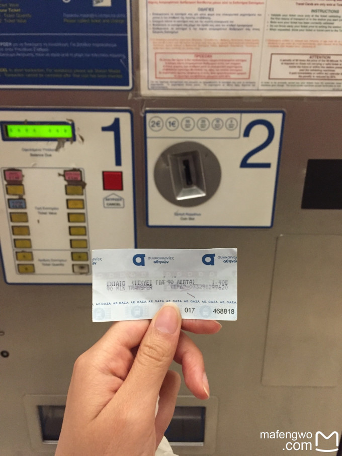 雅典交通就更方便了一些,地铁和公交都是挺方便的,因为我们住的离宪法广场不远,大部分时候靠走路,累了就坐地铁。地铁票是1.4欧一张,90分钟内可以无限制的坐,学生可以打个折,0.6欧一张。也可以买24小时内有效的票,4.5欧一张。但是去机场的地铁票要单独买,10欧一张,学生票好像是5欧。附上地铁票和售票机的图片