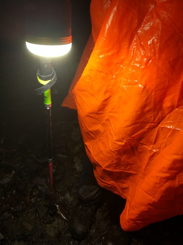 我是负责殿后的,路途有个妹子膝盖痛,只能走的慢,结果到了下午4点钟,路程才走了一半,领队找人把大部队带走,然后在路中等我们,我和受伤的妹子慢慢走最后,碰到领队后,调整装备,准备走夜路,好在4个人有2个灯,一个营灯,一个手电,搭配非常好。