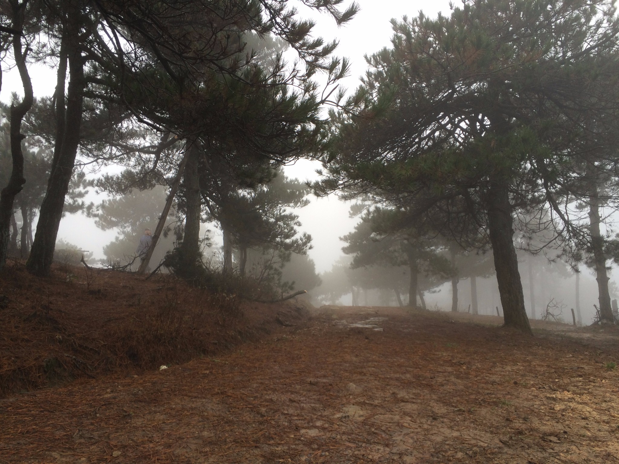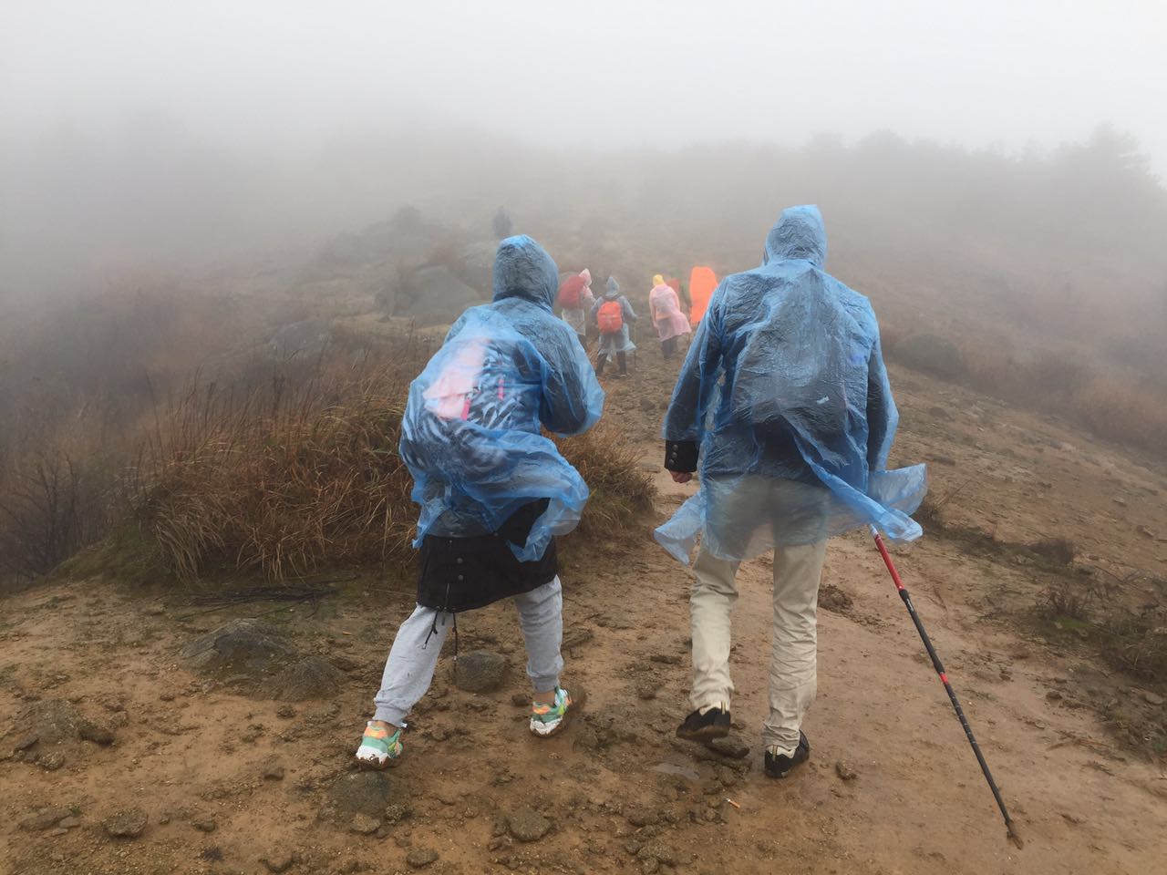 雾慢慢散去,天气慢慢变好,地也干了, 吃着士力架,唱着歌就这么下山,我依然殿后,还有个小伙伴,还有膝盖疼的妹子。