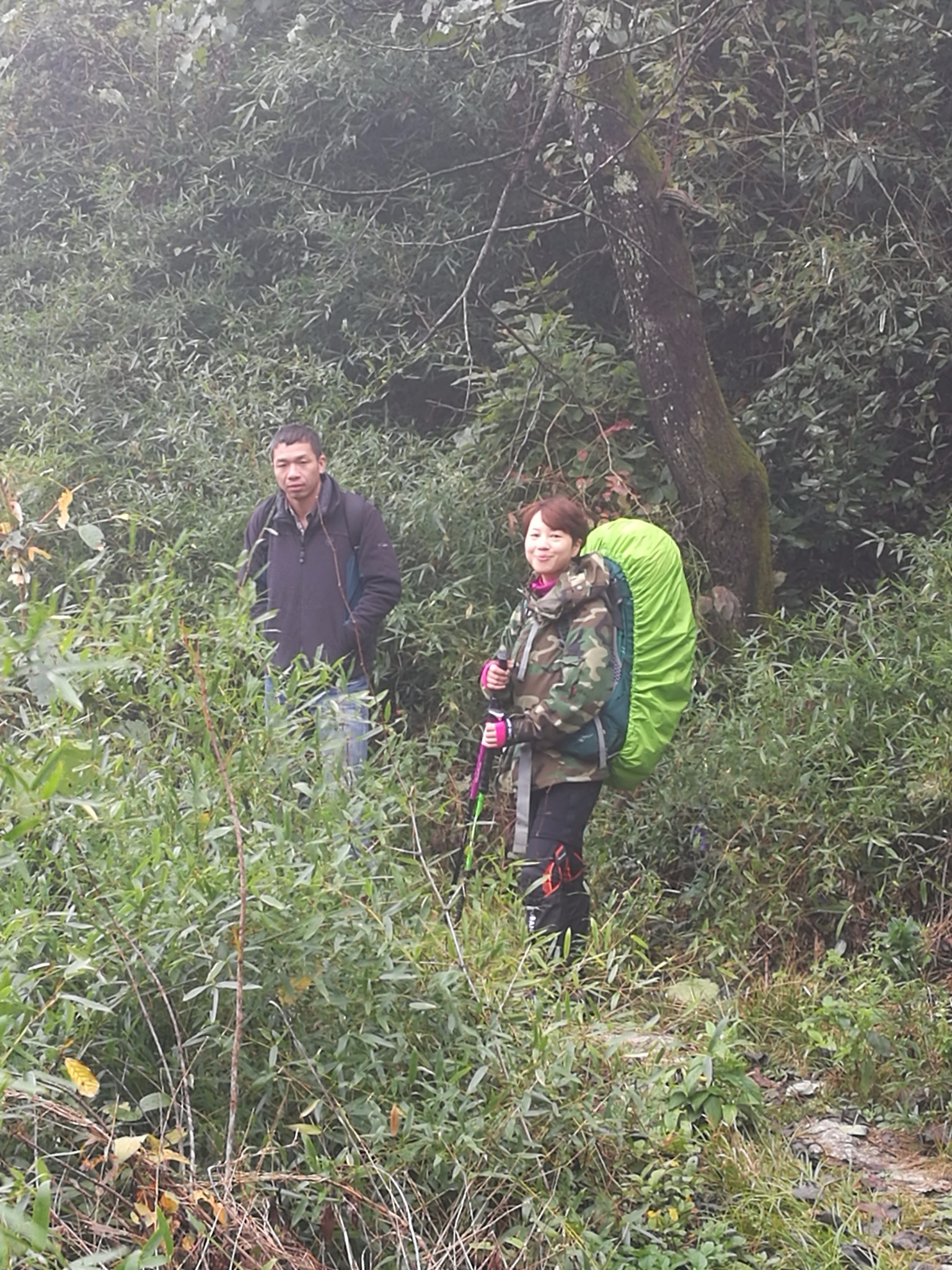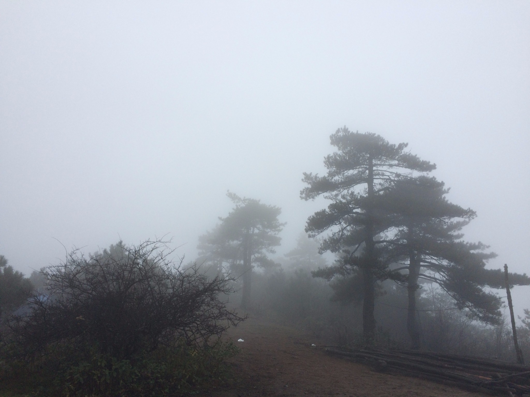 第二天早上,天气大雾,水蒸气浓烈(事实证明,我一天喝了不到300ml水),到了一个海拔1200米的地方下车,找小路出发。司机老王是个故事复杂的角色,登山前,他双手合十给我们祈祷,哈哈哈。