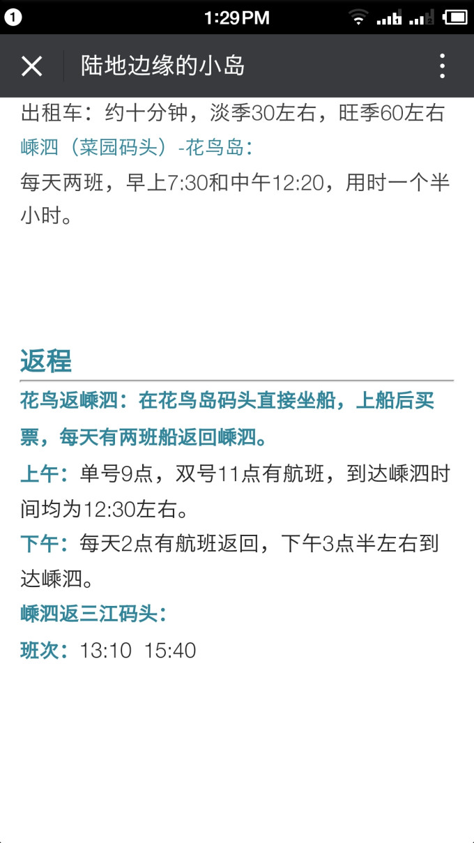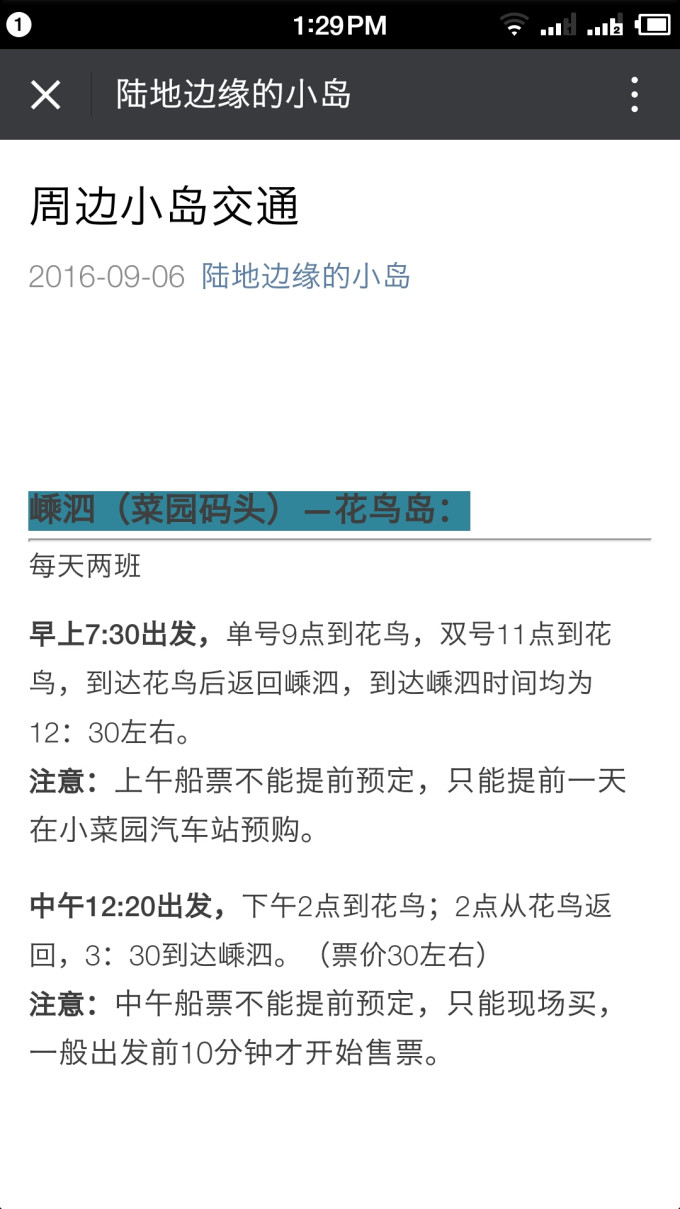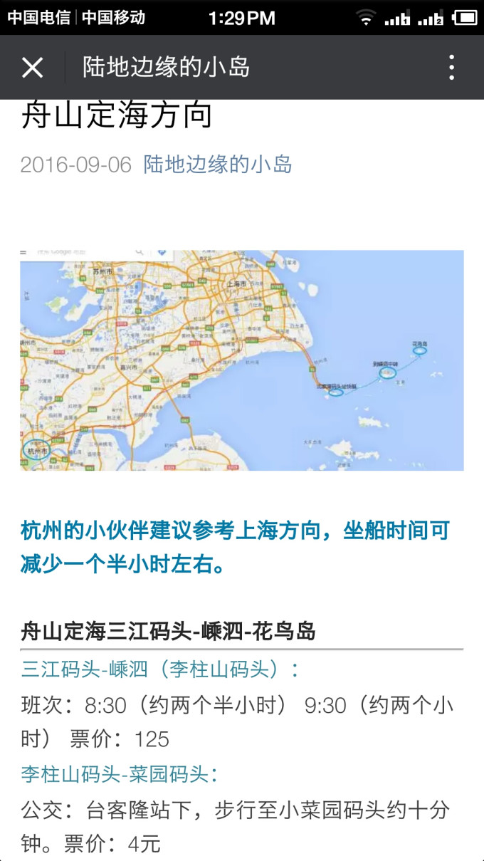 请看下面是花鸟岛一个民宿发在公众号上的路线