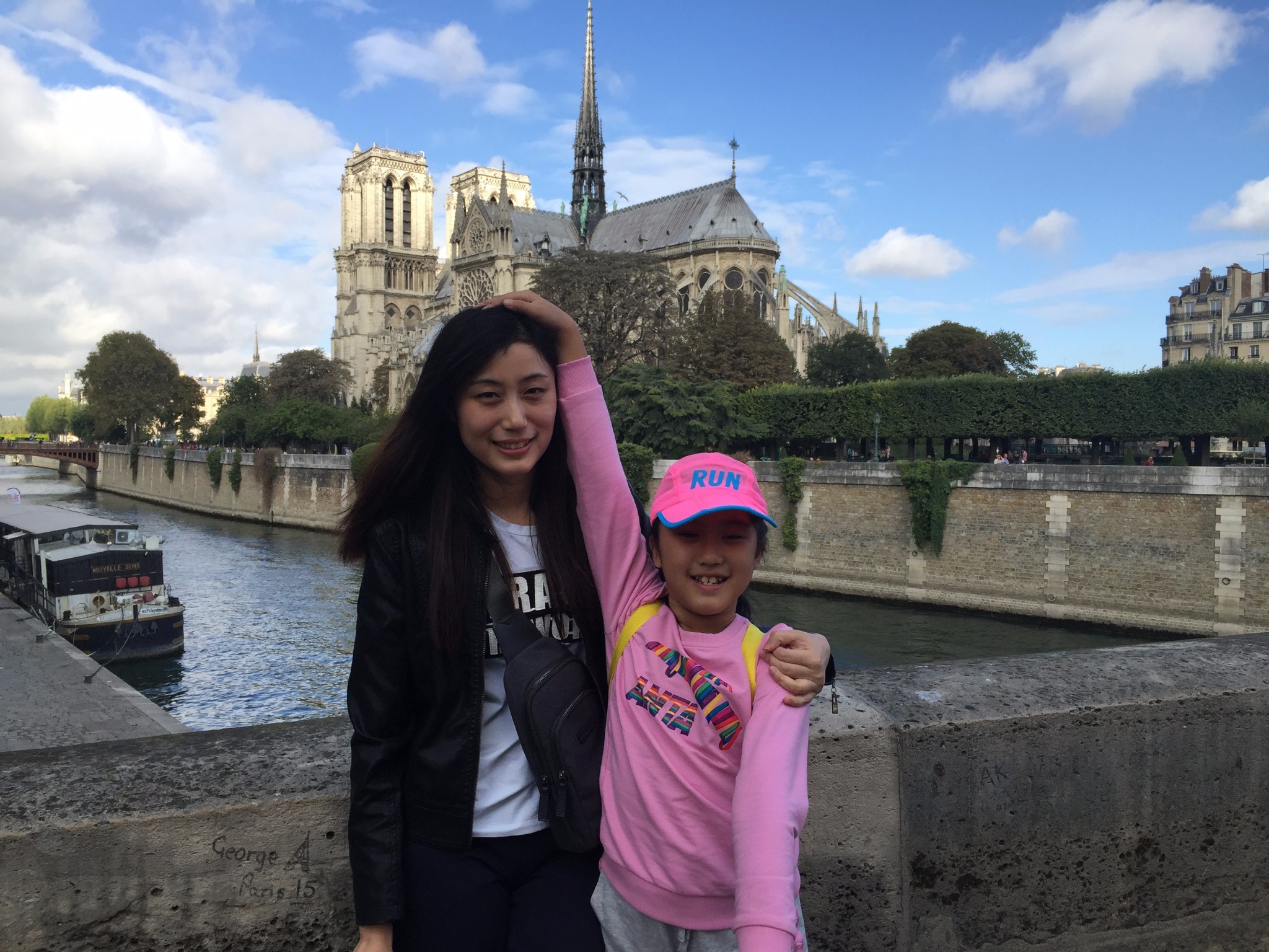无论如何,我们将踏上一段未知的旅行,因此,小伙伴们叽叽喳喳的,开心得不行!此行7个人,5大2小,两辆车。第一站是巴黎圣母院。车子就停在塞纳河畔。