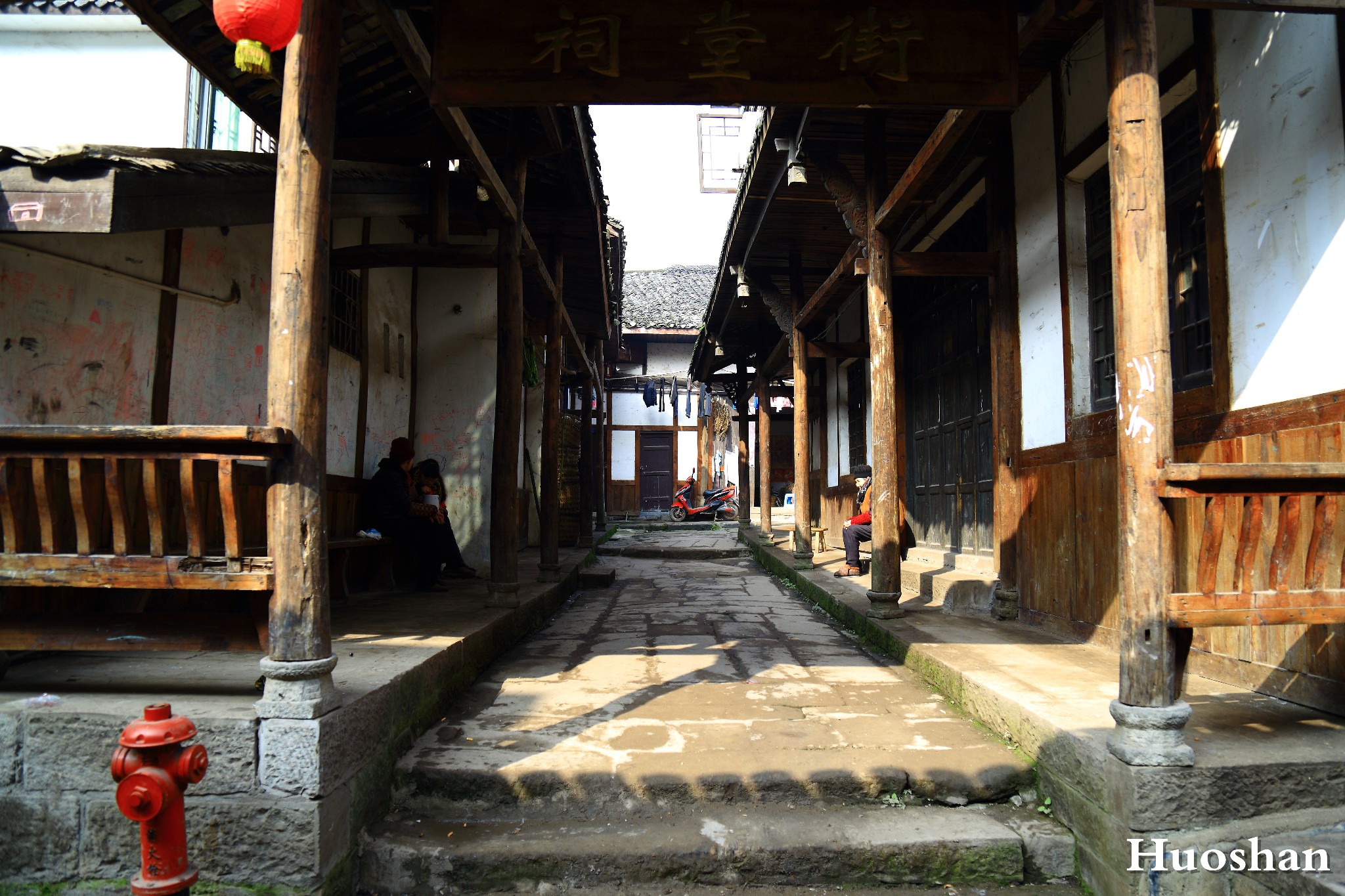 出民俗街街口,往右斜过马路,一座沧桑古朴的风雨廊就映入眼帘。那些早已褪色的廊柱和顶部的椽梁,无声地述说着几百年来经历的风雨。
