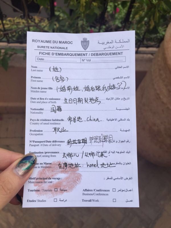 这次的超长途的航班选择的是阿行,飞机上一路的吃喝 让你觉得时间睡睡就过去了,加上转机时间总共长达23小时,终于到达卡萨了 时间是当地时间中午十二点,与北京时差慢7小时。记着要有随身带着笔的好习惯在飞机上提前写好入境卡然后自然就可以节省入境排长队的时间了。由于我的航班是比三个朋友最早到达的所以我一个人要计划着打发白天的时间等待她们夜晚的到来。
