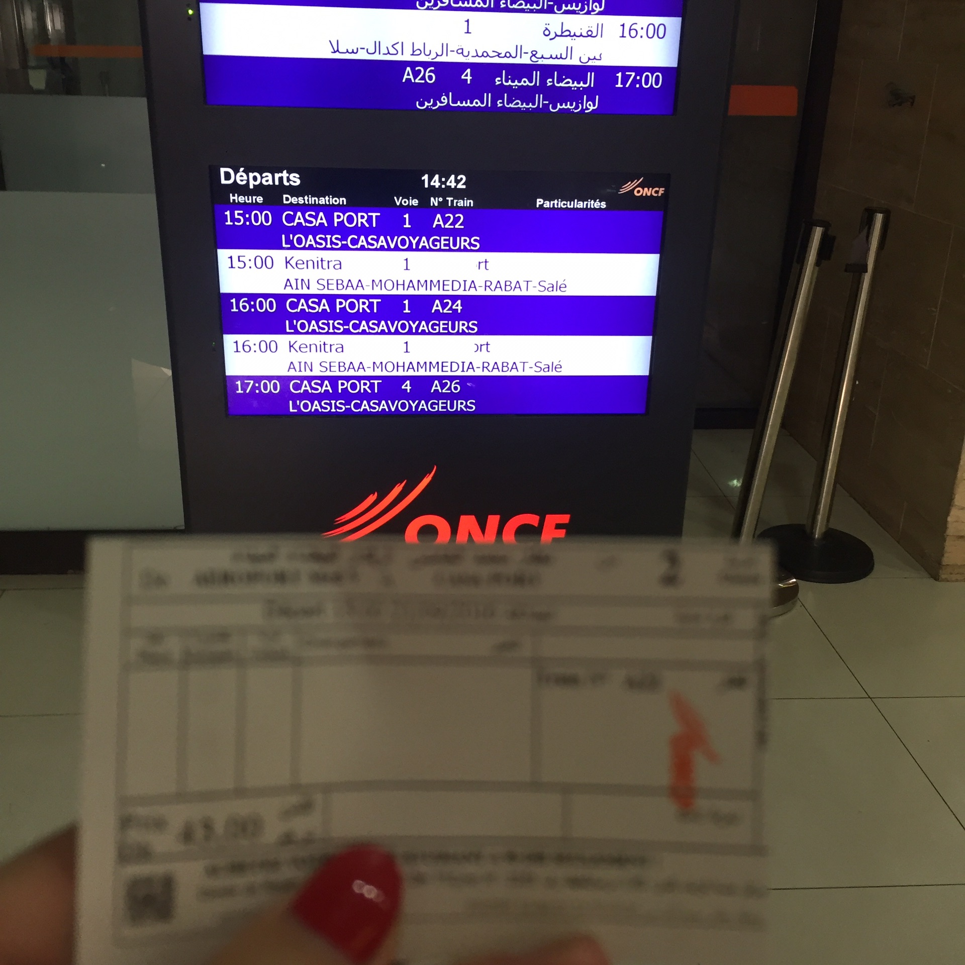票不用提前订,你告诉售票员你要去卡萨布兰卡最快的就ok 了 票价36迪拉姆