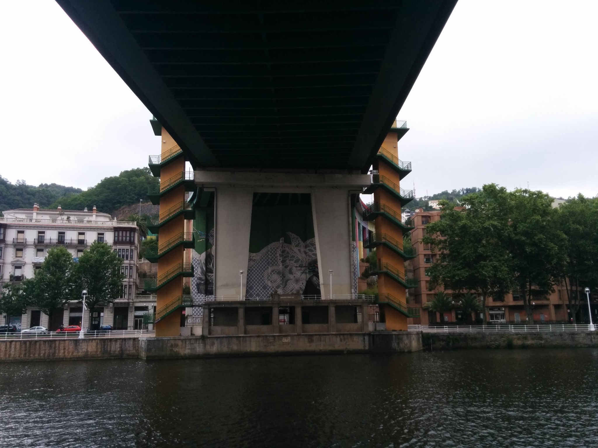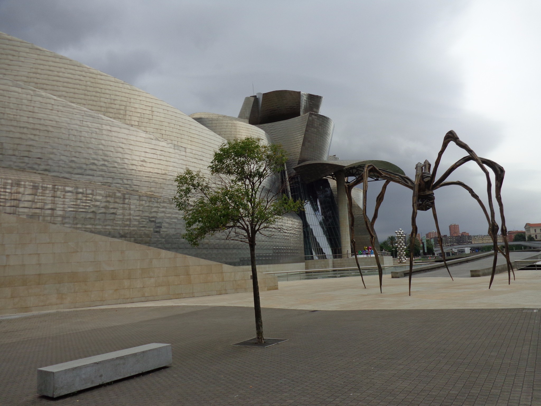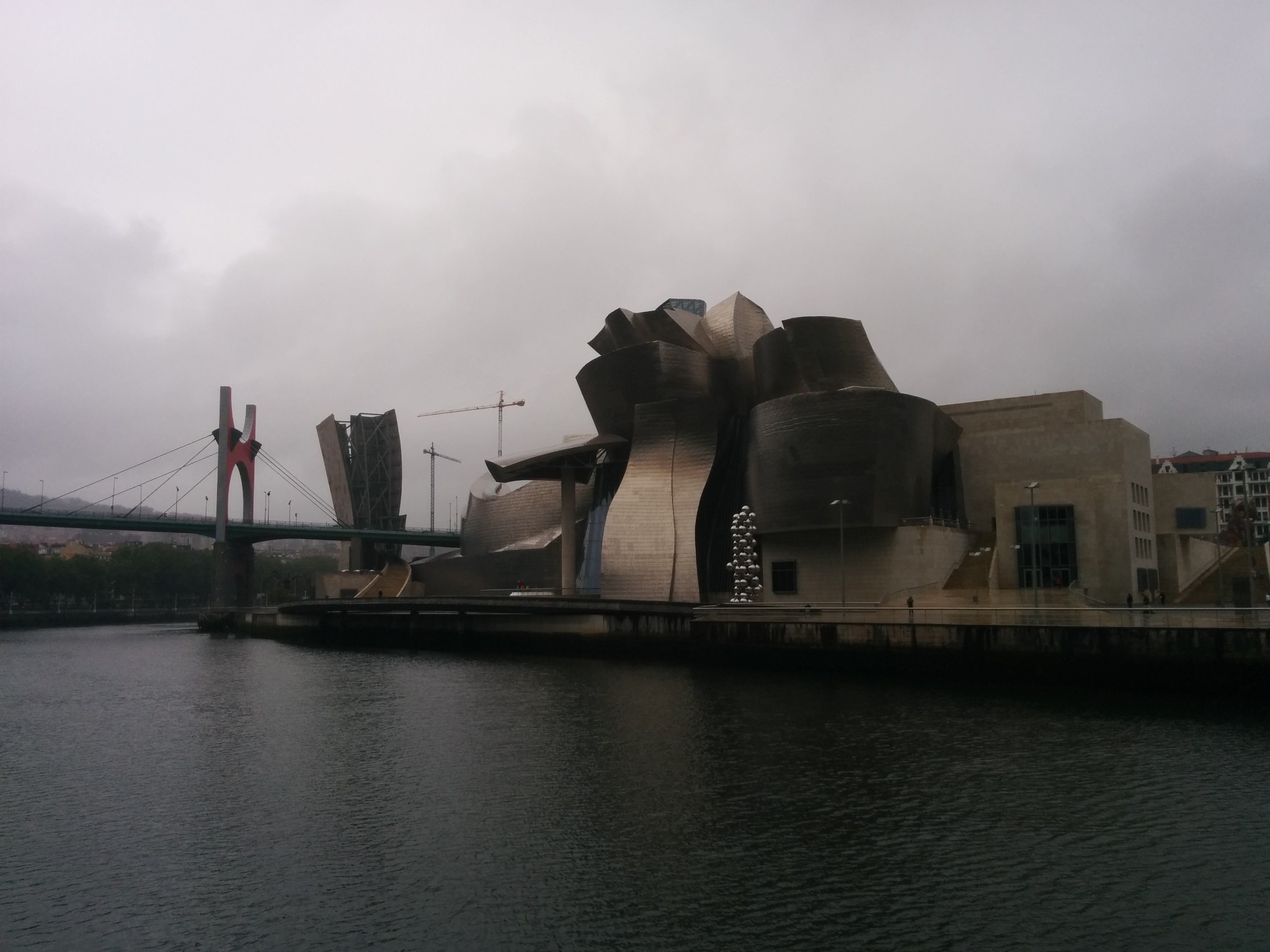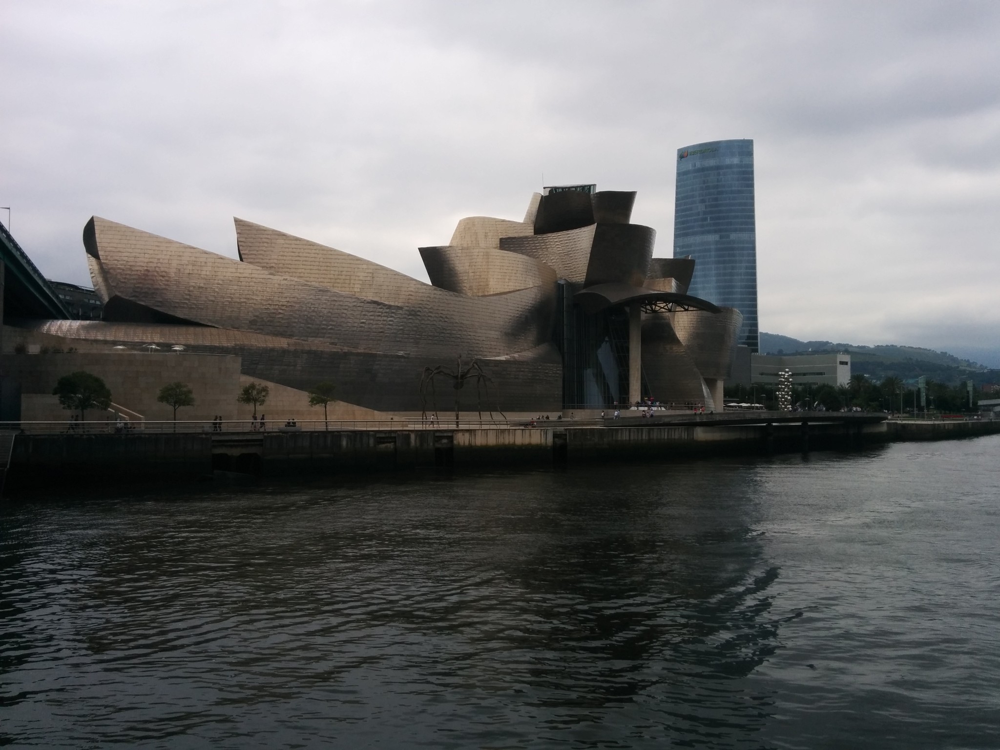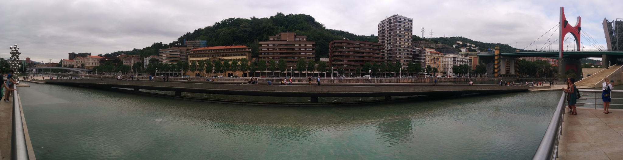 在机场和市区之间需要穿过一个隧道,一出隧道是可以看见毕尔巴鄂河流两岸的全景,当时有被惊艳到。7月的毕尔巴鄂还是雨季,阴雨的天空丝毫没有降低这座城市带给我的冲击,反而增强了其魅力。城市的建筑即给人一种富庶的感觉,城市非常小,适合漫步其中,特别是沿河两岸,带给人平静惬意的感觉。没有过多的喧闹,也没有过分的冷清,恰到好处的平衡可以有种脱俗的感觉。