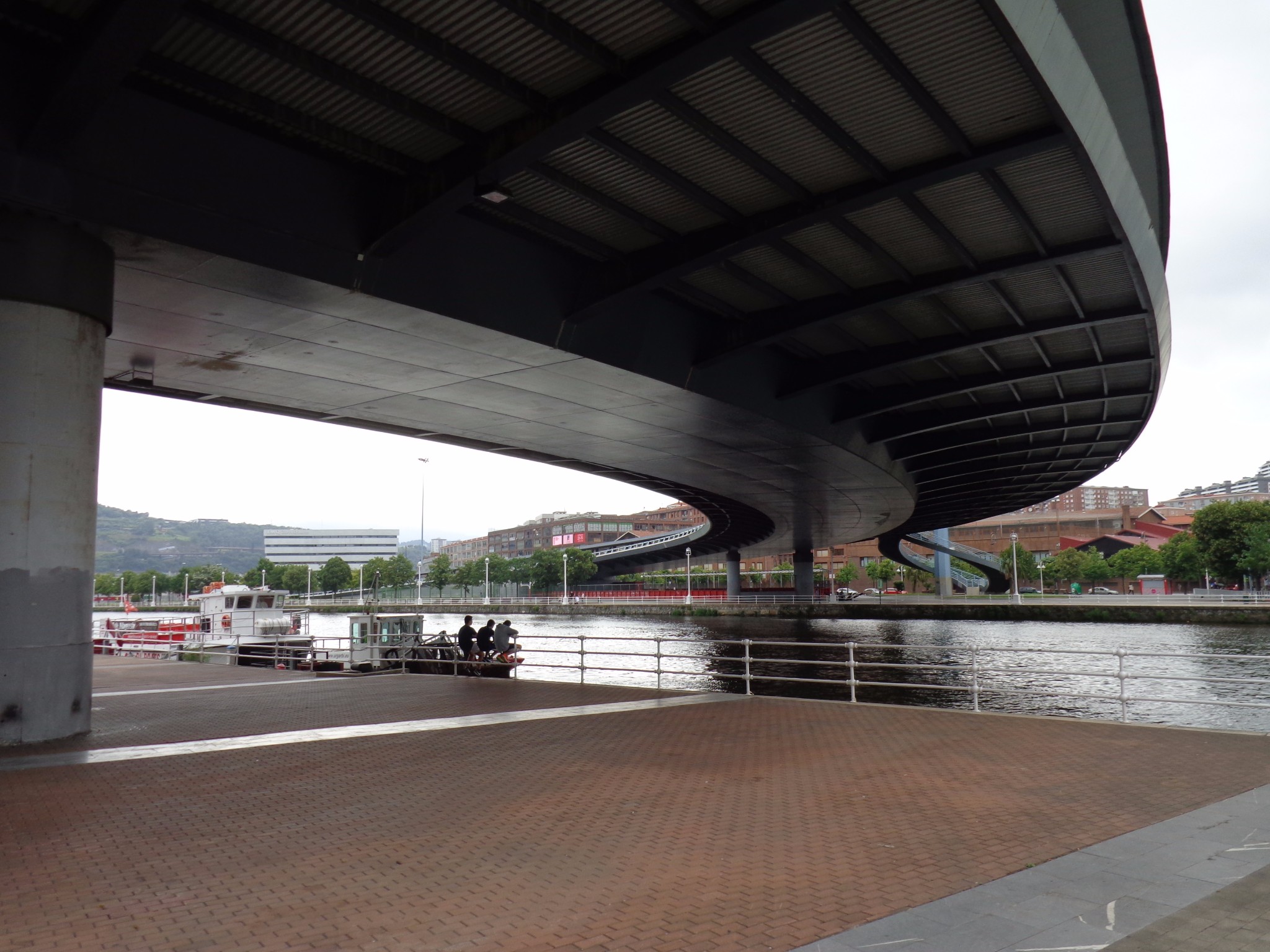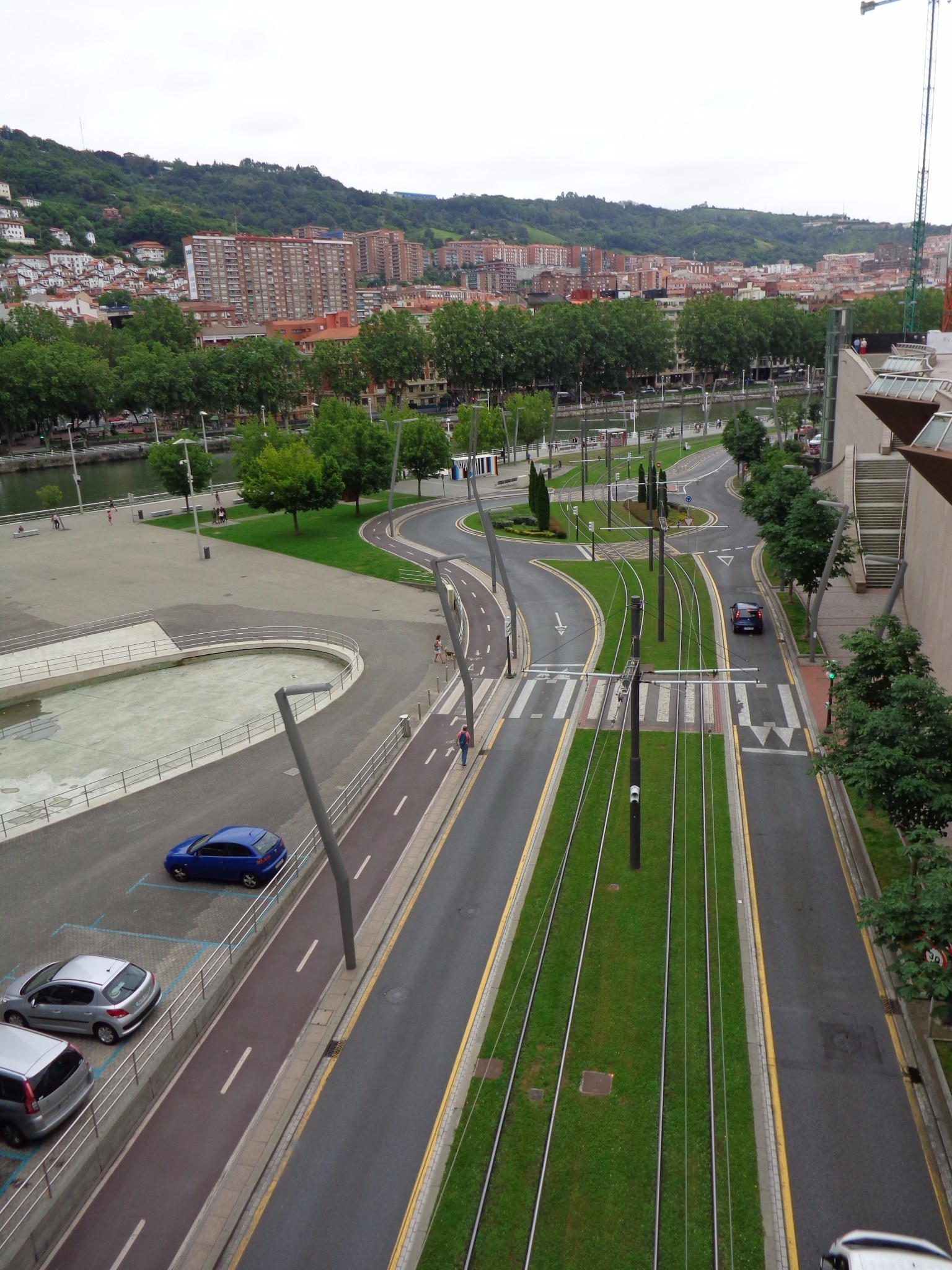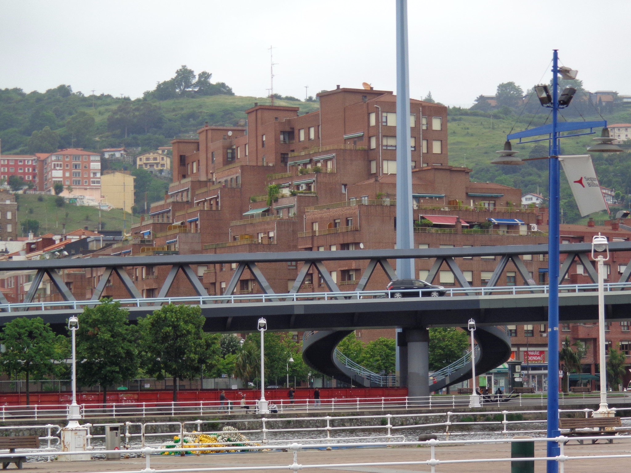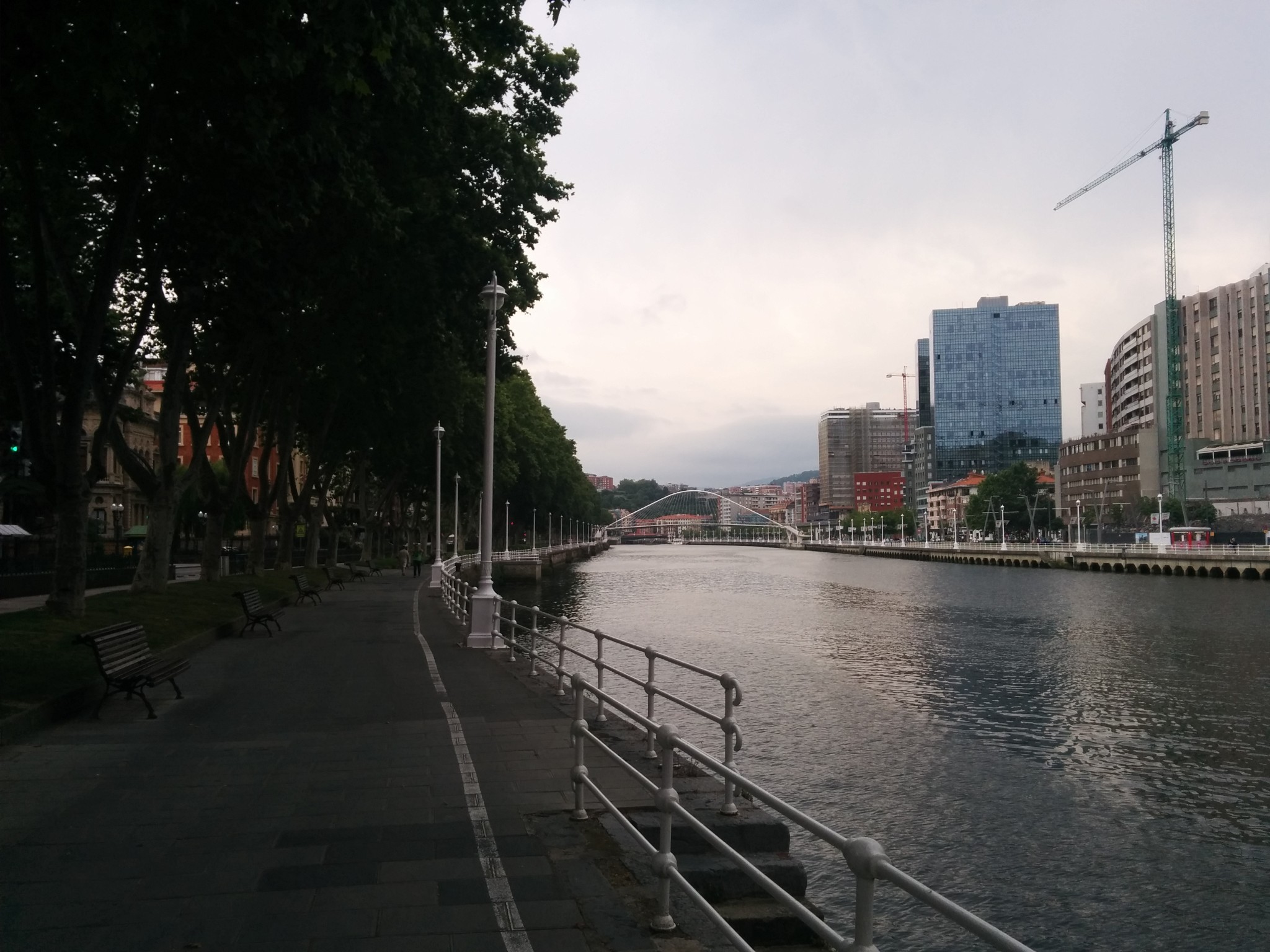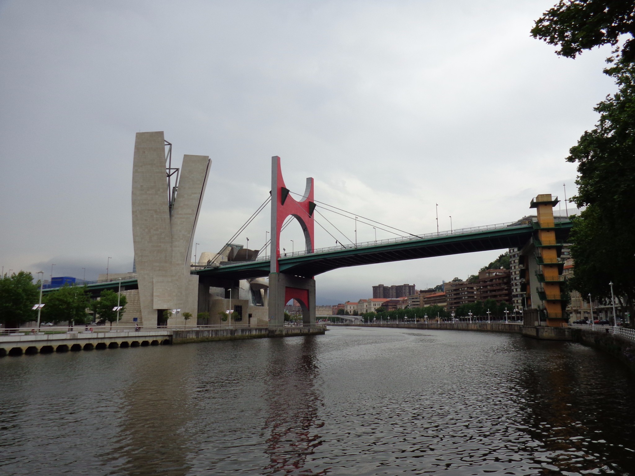 在机场和市区之间需要穿过一个隧道,一出隧道是可以看见毕尔巴鄂河流两岸的全景,当时有被惊艳到。7月的毕尔巴鄂还是雨季,阴雨的天空丝毫没有降低这座城市带给我的冲击,反而增强了其魅力。城市的建筑即给人一种富庶的感觉,城市非常小,适合漫步其中,特别是沿河两岸,带给人平静惬意的感觉。没有过多的喧闹,也没有过分的冷清,恰到好处的平衡可以有种脱俗的感觉。
