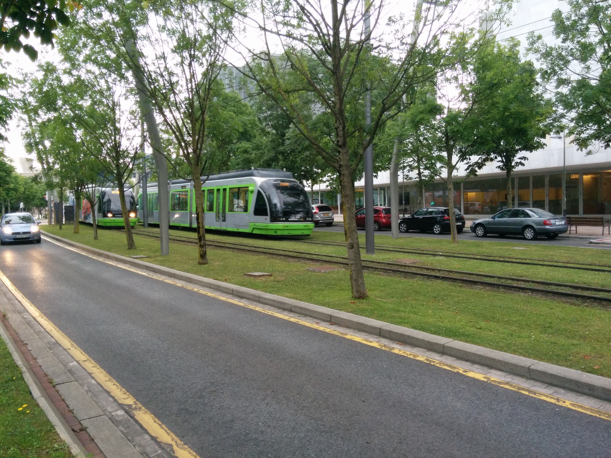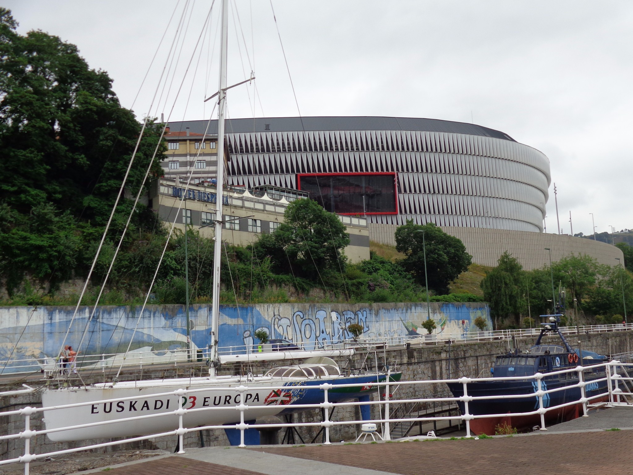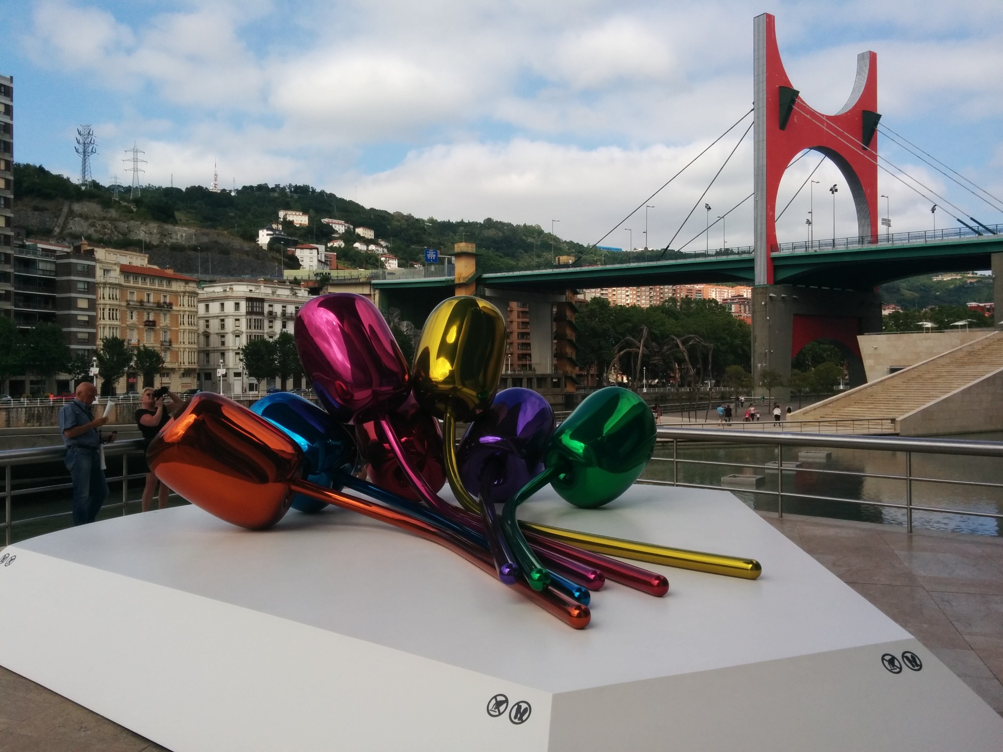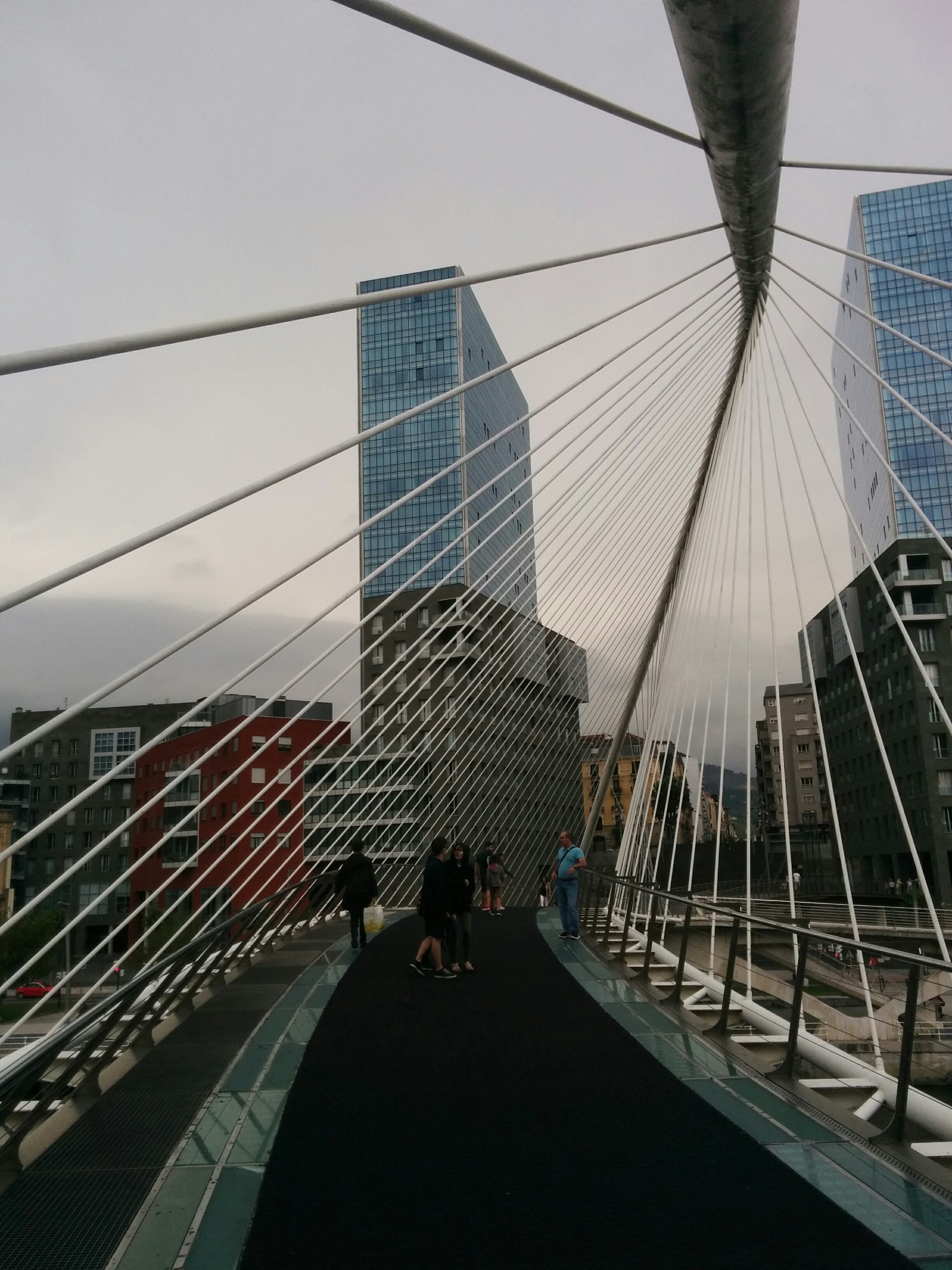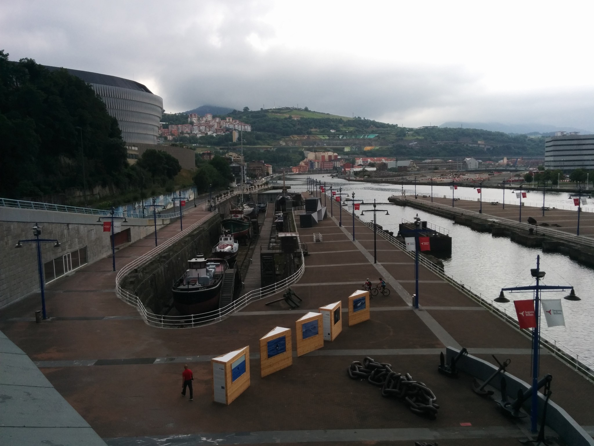 在机场和市区之间需要穿过一个隧道,一出隧道是可以看见毕尔巴鄂河流两岸的全景,当时有被惊艳到。7月的毕尔巴鄂还是雨季,阴雨的天空丝毫没有降低这座城市带给我的冲击,反而增强了其魅力。城市的建筑即给人一种富庶的感觉,城市非常小,适合漫步其中,特别是沿河两岸,带给人平静惬意的感觉。没有过多的喧闹,也没有过分的冷清,恰到好处的平衡可以有种脱俗的感觉。