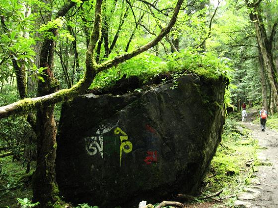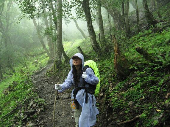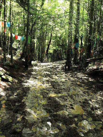 从温泉到雨崩 ,20公里的山路,前面12公里纯上坡,后面8公里纯下坡,都是平均40度的陡坡,有些路段甚至逼近70度。前些天天气不好,刚下过雨,所以笼罩在林中的那些泥土路,异常潮湿泥泞,再混合着些马和骡子留下的粪啊尿啊,这时才发现为什么说是自虐型路线了。