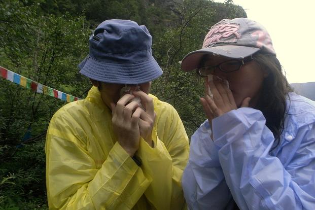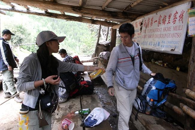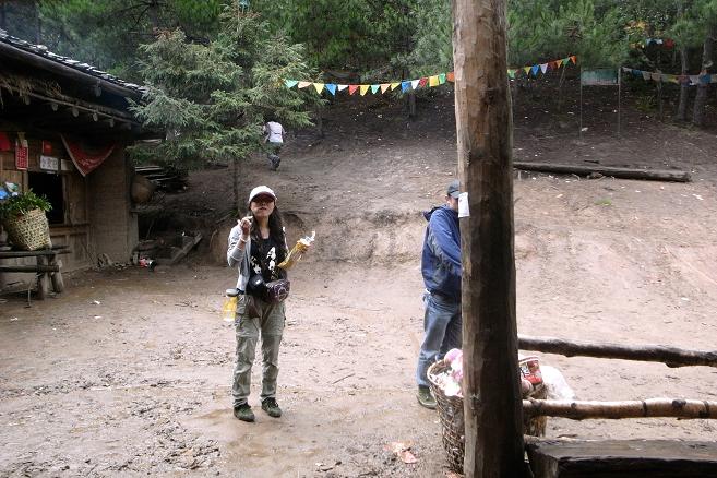 我们在雨崩 的三天,每天都经历了六、七个小时的徒步。回想起来,不知道那时依靠着一股什么神奇的力量挺过来的。路上当我们累得血液直冲脑门、拿着德芙士力架狂啃的时候,偶尔会见一些悠闲进山的年轻人,他们一身的耐克阿迪,迷彩帽,背上的背包、脚上的登山鞋能看出来都是比较高级的户外装备,重点是,他们骑在马背上。。。然后碰到迎面而来、柱着登山杖正气喘吁吁的一些境外友人,他们竟然面带笑容地甩着一口蹩脚的塑料英语“Are you tired?"此时真应该配上小牛那套一边抽搐嘴角一边手指做面条状滴汗的经典动作。丢人啊。