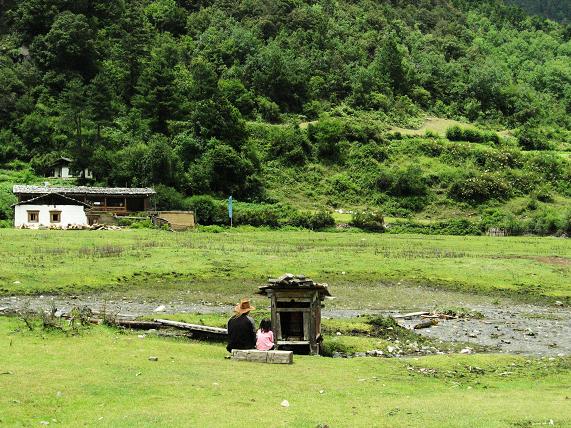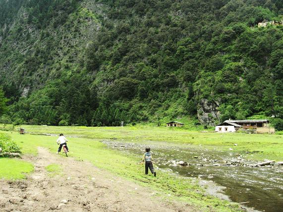 下午四点左右,历尽千辛万苦,跨过高山,越过...另一座高山,终于看到亲切的人类痕迹了!