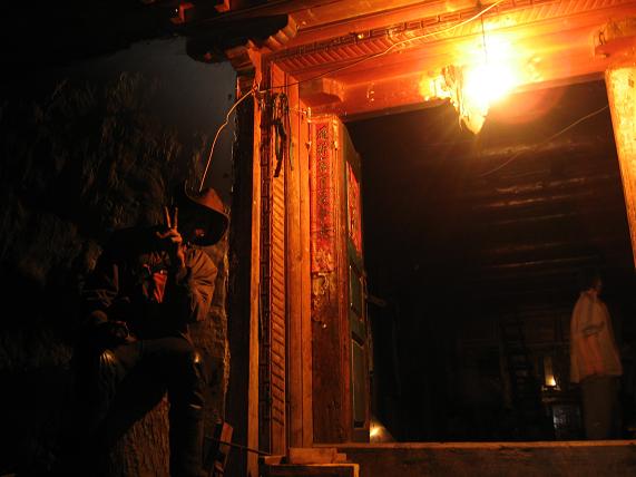 我们的客栈院子里,有一条石板长凳,躺在上面可以很轻松地直视到满天的繁星。我和小牛轮流躺在上面,感觉就像是躺在星星们的怀抱里;野人则安静地坐在一边,低声给我们哼起蔡琴的歌,久远低沉的声音,在微冷的夜里飘着,那瞬间像是穿越了时空,一时竟不知自己身为何人,身处何方。