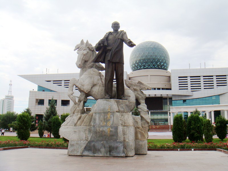 从乌鲁木齐到布尔津,我们走得是西线,10个小时的车程。经过的第一座城市,是石河子。关于石河子,百度上的介绍如下:“石河子是新疆生产建设兵团直辖的县级市,一度是新疆兵团总部所在地(后总部迁至乌鲁木齐),也是农八师实行师市合一管理体制的新兴城市,它是陶峙岳起义部队改编的中国人民解放军第22兵团官兵建设起来的。石河子市是以农场为依托、以工业为主导、工农结合、城乡结合、农工商一体化的军垦新城,以“戈壁明珠”的美誉著称于世。”