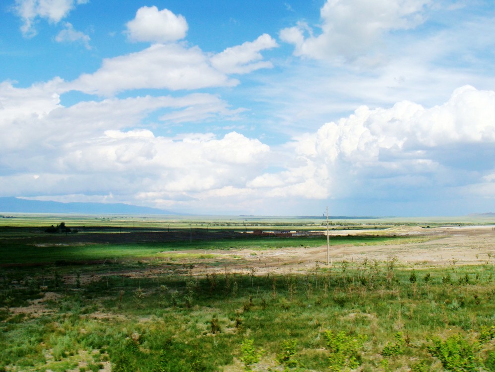 车子继续往前开,风景又有了些变化,渐渐的开始能看到一些绿色了,视野也变得更开阔,天高云淡。只是路上车辆很少,往往要很久,才能看见对面开过来一辆车子,两边的风景里,也很少有人,或动物的身影,一车人也已经大多都东倒西歪了。