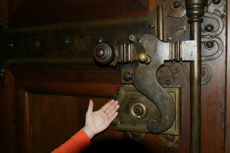 教堂门上的大锁,为了显示它的巨大,我不惜用我的手做了“尺子”。