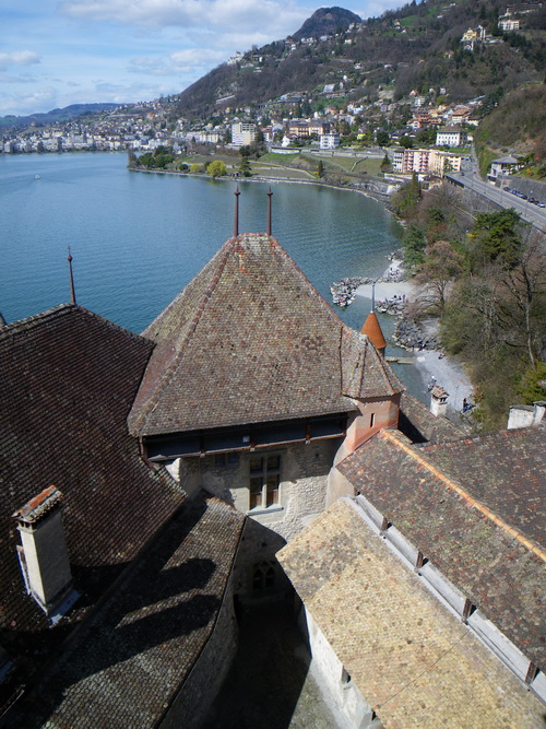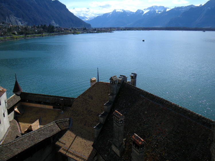 具有700年历史的西庸城堡 ,远观犹如浮于日内瓦湖 水之上,这是因为城堡整个地基是以当地所採的巨型石块,築于日内瓦湖 300公尺深的湖底,一踏进城堡属于监狱部分的建築,就可以看见地面全部是以大块的岩石所建成。西庸城堡 的腹地广阔,整个建築包括庭院、瞭望塔、大厅、卧室、监狱、城堡主塔等,其中以监狱最为着名。整个由岩石建成的监狱,据说当年最多曾监禁了200名左右的囚犯,而最有名的囚犯则是16世纪因支持日内瓦 独立而被囚禁的神父彭尼华,他曾被铁鍊锁在监狱的石柱 上达4年之久。1816年英国 着名诗人拜伦来西庸城堡 参观时,因为听闻这段悲惨的历史,而在石柱 留下他的签名,並且写下着名的诗--「西庸之囚」,现在拜伦的签名也成为此地重要的参观景点。