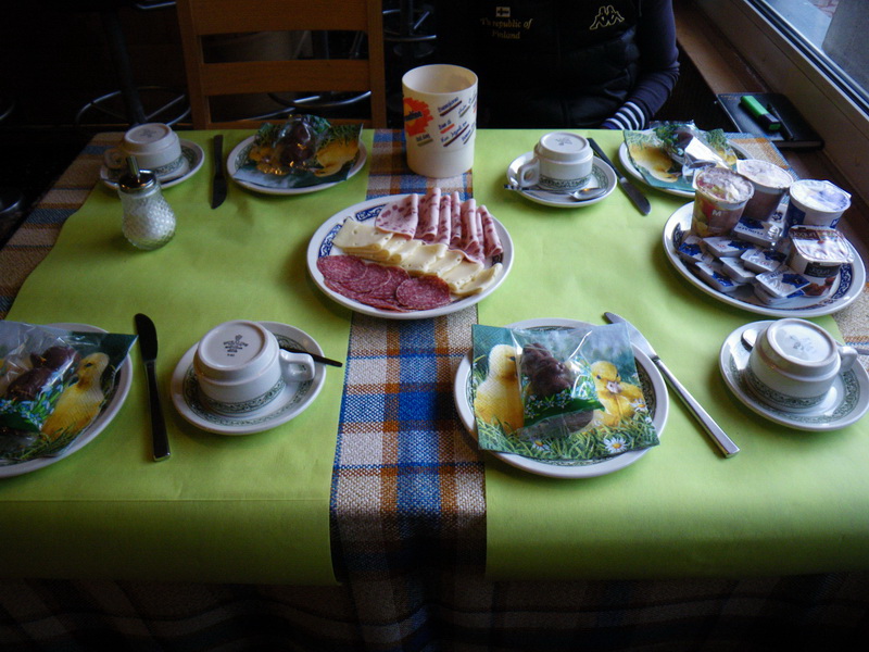 通常旅店的房费都含早餐,因为过节,Erich给我们每个人一只巧克力兔子。