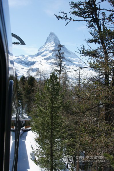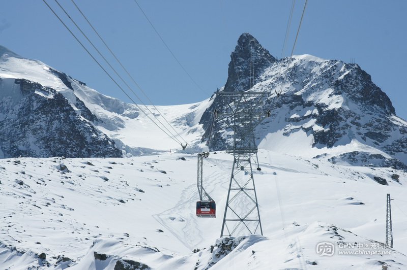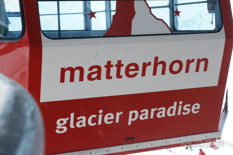 缆车箱外的标语:Matterhorn glacier paradise--冰川天堂-马特宏峰!