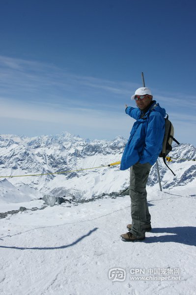 跳哥手指的方向,可以清晰的看到阿尔卑斯山 的主峰--勃朗峰(Mt-BLANC)