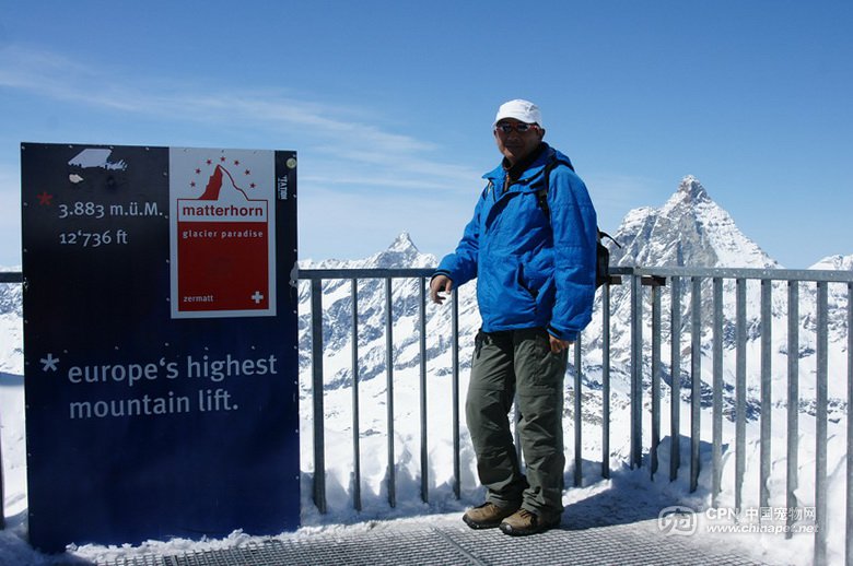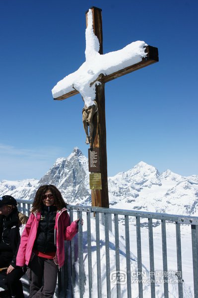 马特宏的三角锥峰,已经在跳哥身后,不那么雄伟高大了。。。。