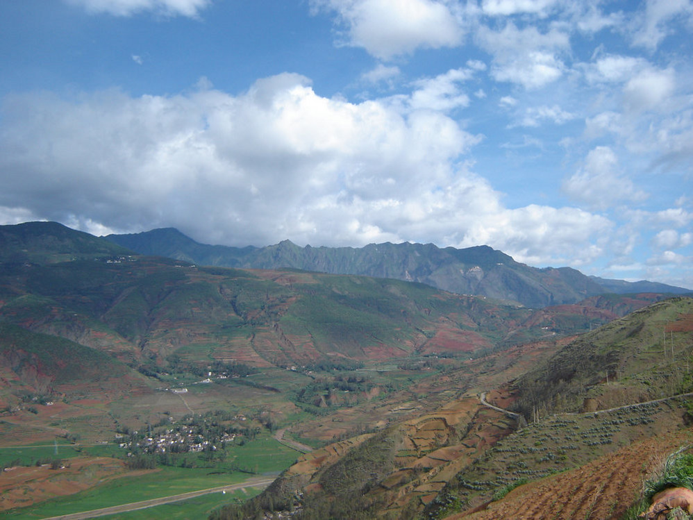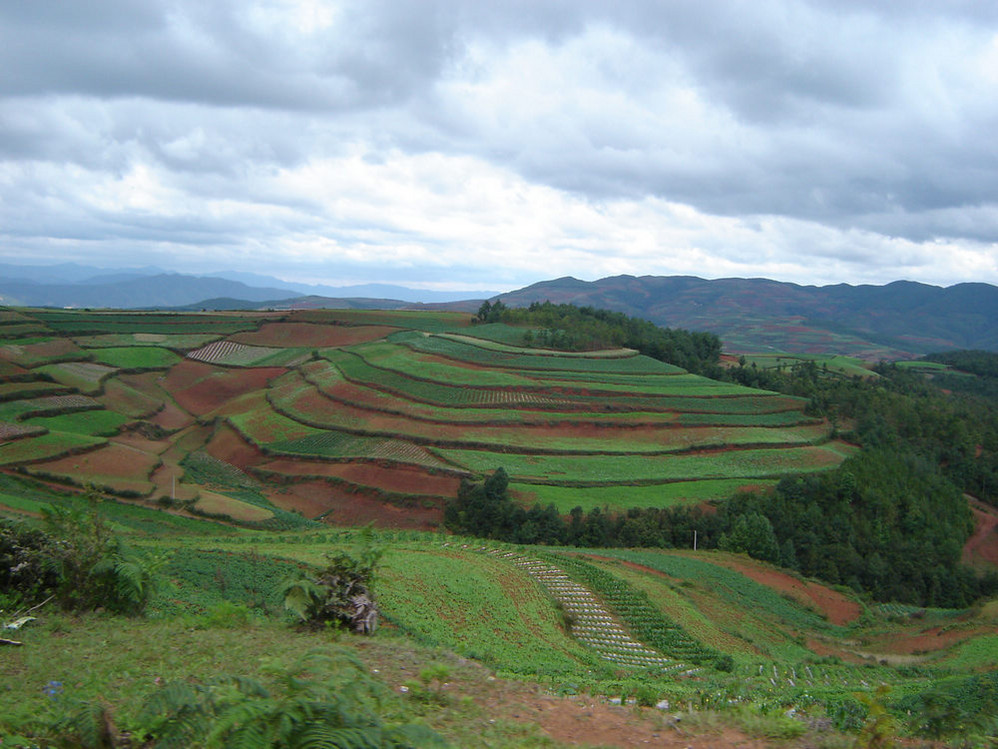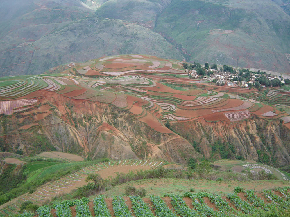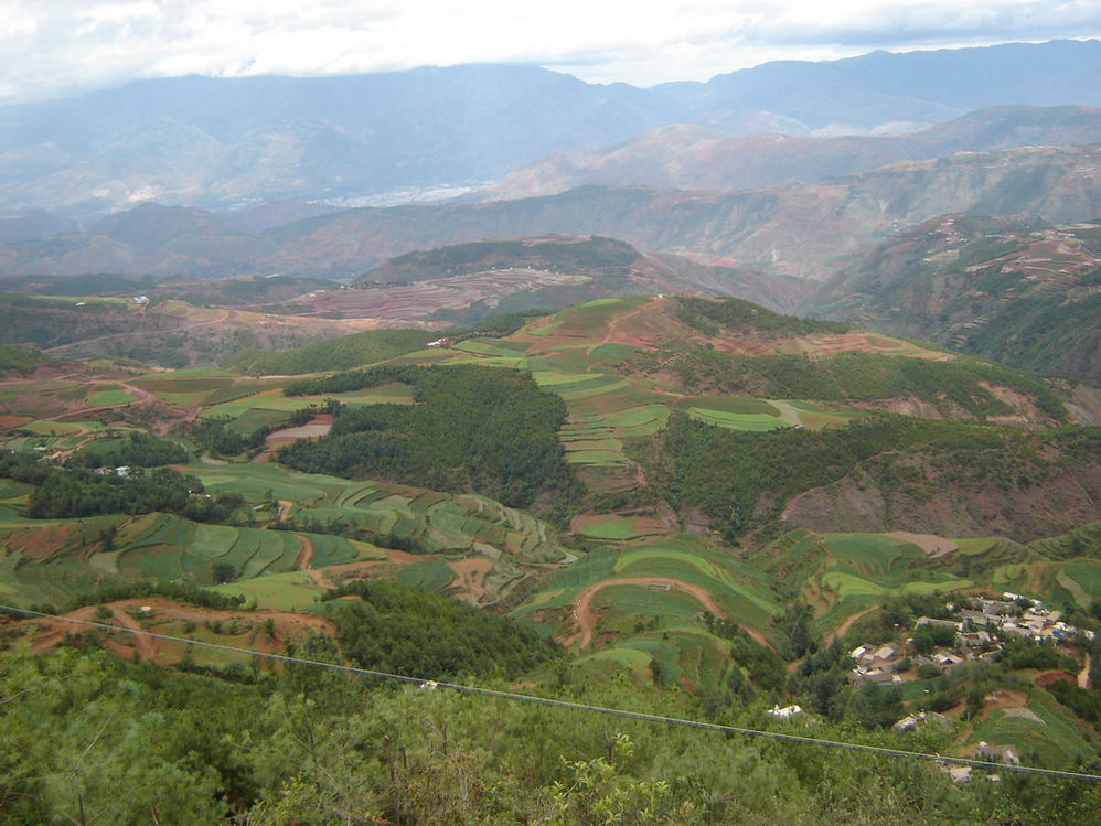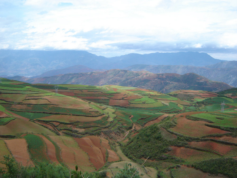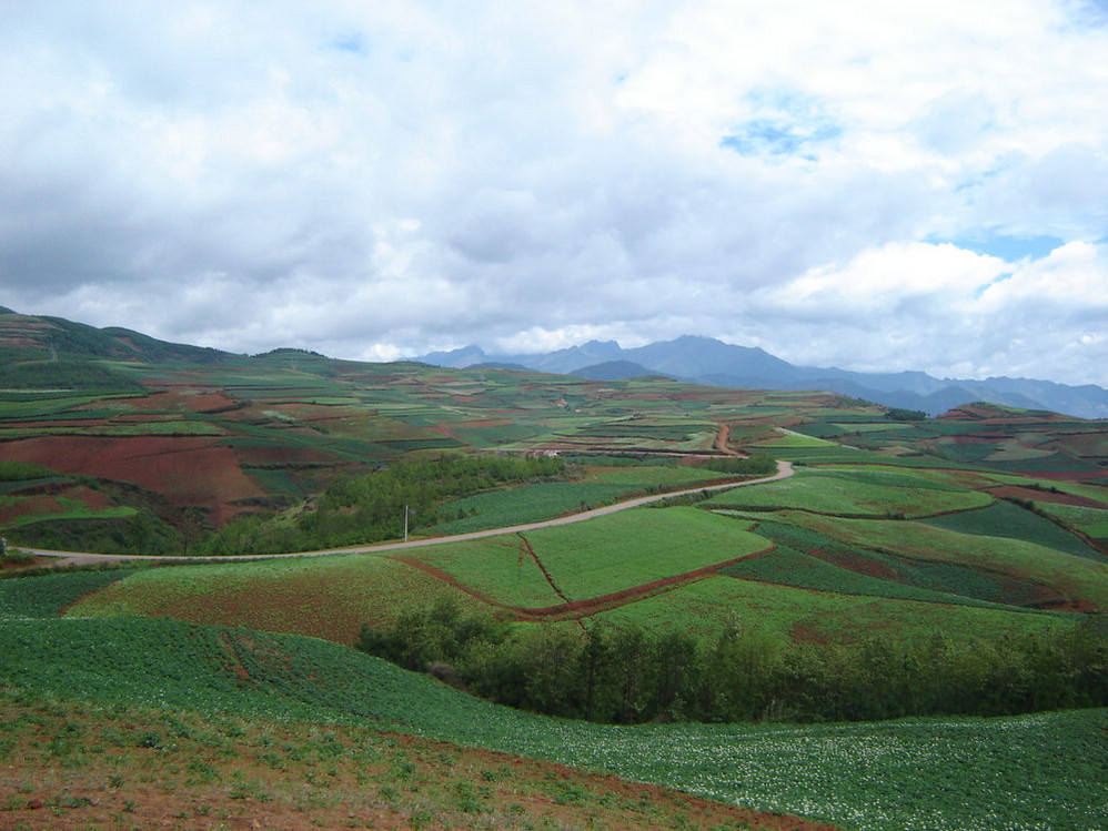 早上前往红土地,沿途欣赏月亮田、松毛棚、龙树、花沟等景点,到花石头后,先左转到乐普凹,之后回花石头用午饭。饭后经七彩坡、锦绣园,到打马坎折回。云南高原上,红土本不稀奇,但面对如此的规模,感到的只有壮观、震撼、大气。延绵群山上的红土地配上绿色的植被、庄稼以及各种植物的花,难怪被人称为“上帝遗失在人间的调色板”。回来的路上到落霞沟,真正明白为什么这里被人称为红土地景区的精华,在此遇上一个从上海来的驴友,他说,因时间关系,只能在元谋土林与红土地二选一,从网上看到红土地更热,就来到这里,果然精彩壮观、名副其实,不虚此行。我告诉他,元谋土林也很有特色,值得一游,有空还是去看看。回到东川,顺小江而下,泥石流的痕迹无处不在,两岸的很多山寸草不生,干热的空气使相机外壳热得发烫。到格勒,人称三江口,海拔600米,系金沙江、小江、以礼河(电站)交汇处,两省四县交界处,金沙江西岸为四川凉山州会东县,东岸为云南,金沙江与小江间的夹角属昆明市东川区,两河以东,北部属昭通市巧家县,南部属曲靖市会泽县,金沙江上滇川两省的交通仍然靠轮渡。沿古代运送京铜的路线,向会泽进发,江边(巧家蒙姑)到会泽娜姑段道路年久失修,崎岖不平,异常难走,天黑到会泽县城,吃过晚饭后连夜赶回宣威。