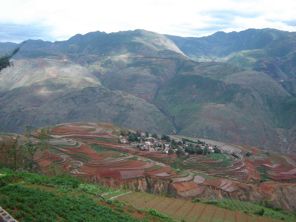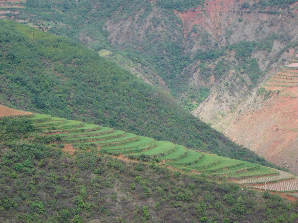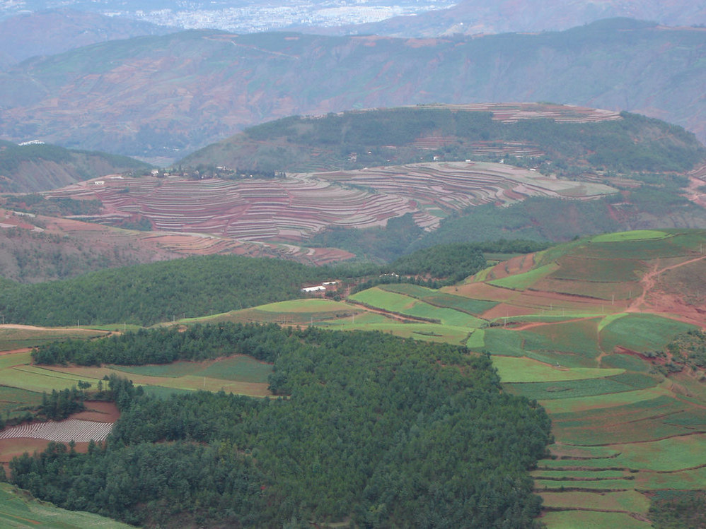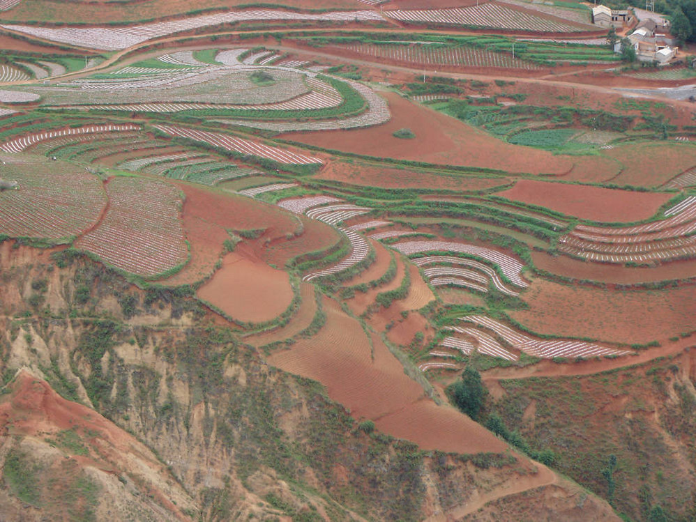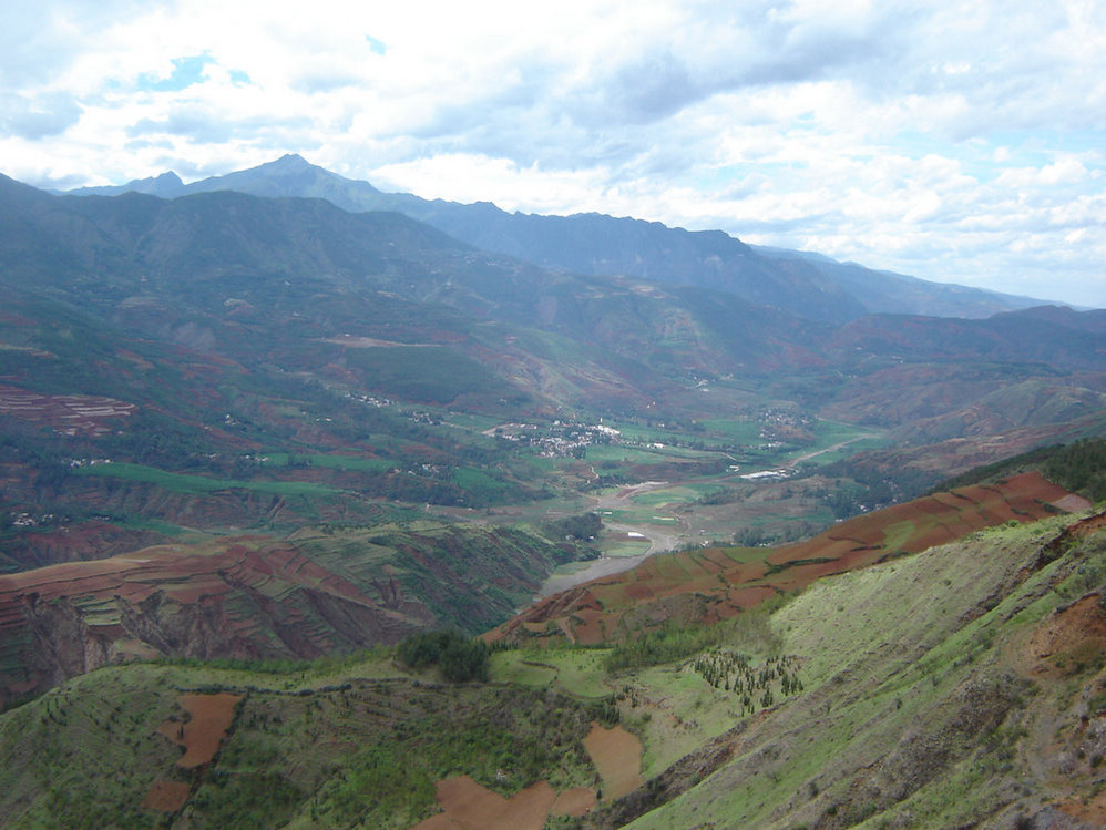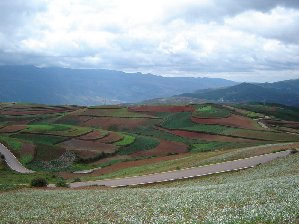 早上前往红土地,沿途欣赏月亮田、松毛棚、龙树、花沟等景点,到花石头后,先左转到乐普凹,之后回花石头用午饭。饭后经七彩坡、锦绣园,到打马坎折回。云南高原上,红土本不稀奇,但面对如此的规模,感到的只有壮观、震撼、大气。延绵群山上的红土地配上绿色的植被、庄稼以及各种植物的花,难怪被人称为“上帝遗失在人间的调色板”。回来的路上到落霞沟,真正明白为什么这里被人称为红土地景区的精华,在此遇上一个从上海来的驴友,他说,因时间关系,只能在元谋土林与红土地二选一,从网上看到红土地更热,就来到这里,果然精彩壮观、名副其实,不虚此行。我告诉他,元谋土林也很有特色,值得一游,有空还是去看看。回到东川,顺小江而下,泥石流的痕迹无处不在,两岸的很多山寸草不生,干热的空气使相机外壳热得发烫。到格勒,人称三江口,海拔600米,系金沙江、小江、以礼河(电站)交汇处,两省四县交界处,金沙江西岸为四川凉山州会东县,东岸为云南,金沙江与小江间的夹角属昆明市东川区,两河以东,北部属昭通市巧家县,南部属曲靖市会泽县,金沙江上滇川两省的交通仍然靠轮渡。沿古代运送京铜的路线,向会泽进发,江边(巧家蒙姑)到会泽娜姑段道路年久失修,崎岖不平,异常难走,天黑到会泽县城,吃过晚饭后连夜赶回宣威。