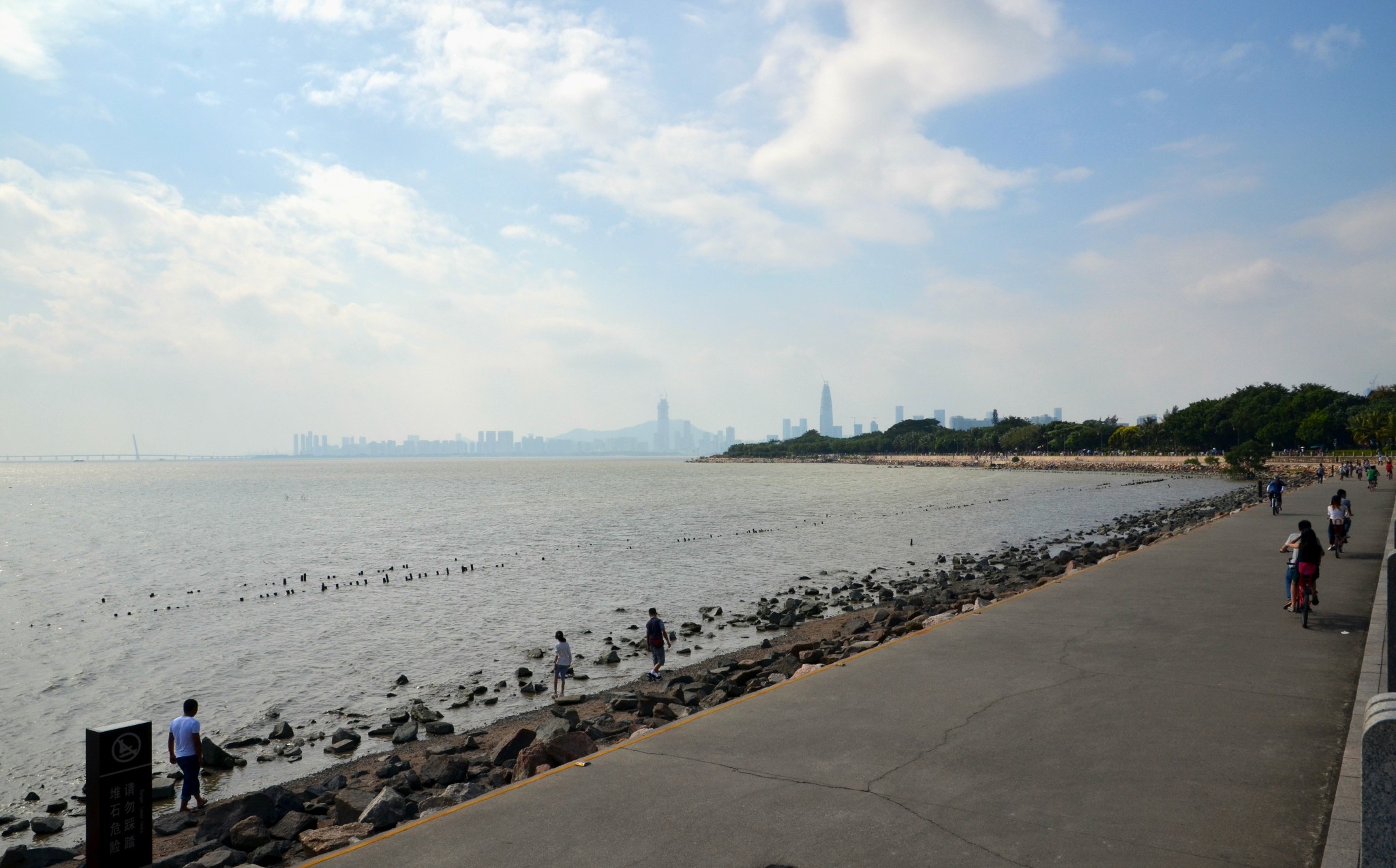 深圳市红树林海滨生态公园坐落在滨海大道西海岸边,与福田红树林保护区相邻,生态公园东面是有绿色长城之称的红树林,西面是滨海大道秀丽迷人的植物长廊,南面是蔚蓝广阔的深圳湾,北面是平坦宽阔的滨海大道。公园独特的地理位置,自然成为人们直接观赏大海和红树林景色的旅游观光胜地。徒步。骑游的好去处。