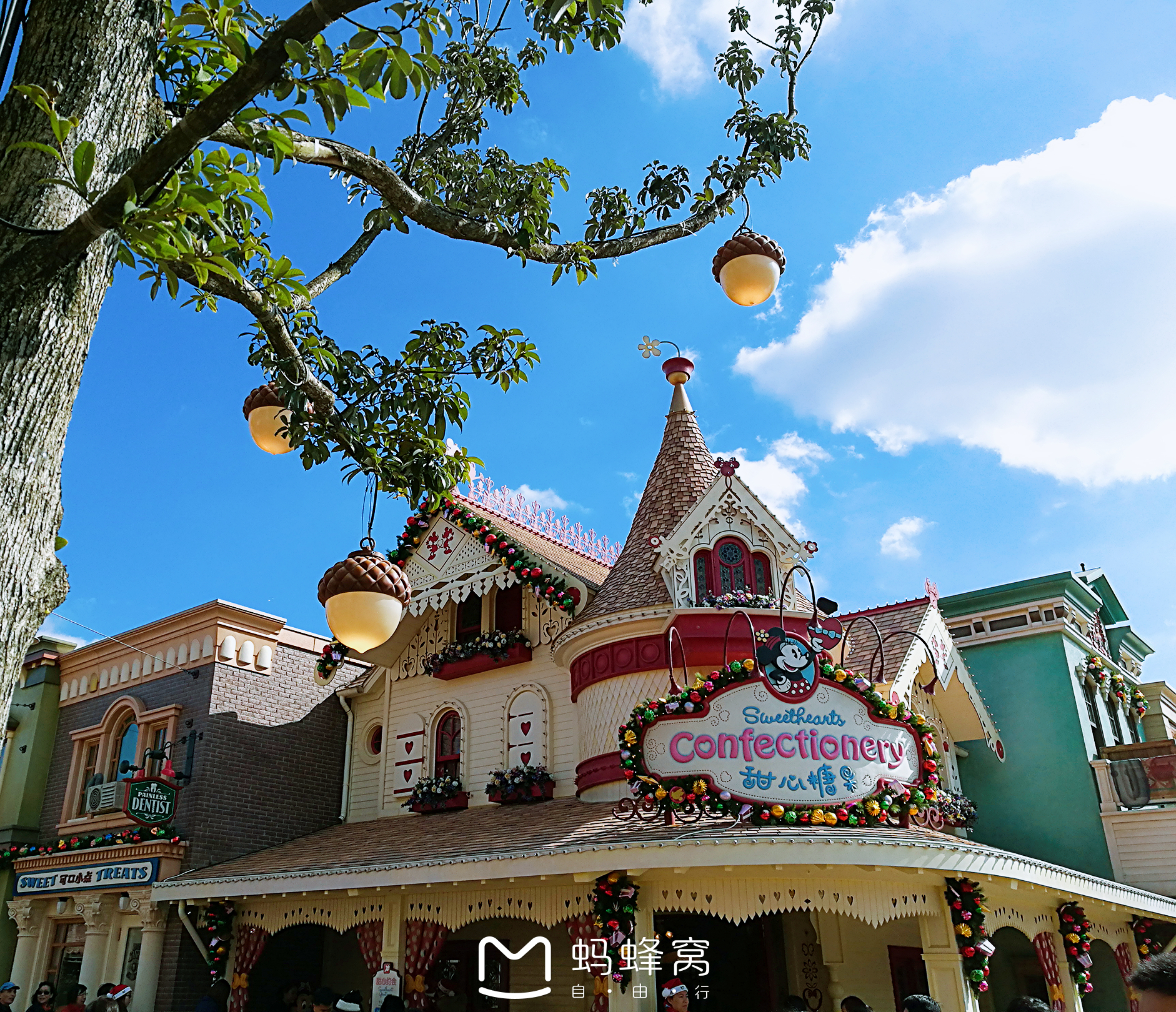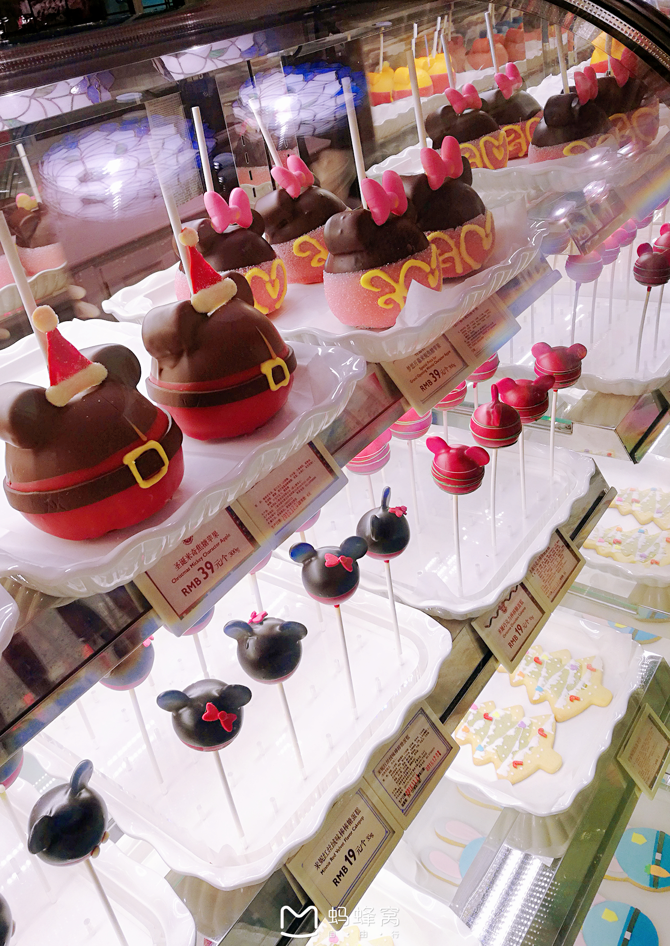 小米大厨烘焙坊有新鲜出炉的面包,帕帕里诺冰淇淋有迪士尼人物造型的松饼,甜心糖果店有各种糖果巧克力,以及圣诞季应景的花样焦糖苹果。