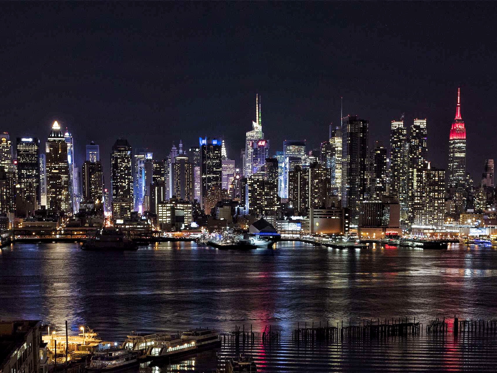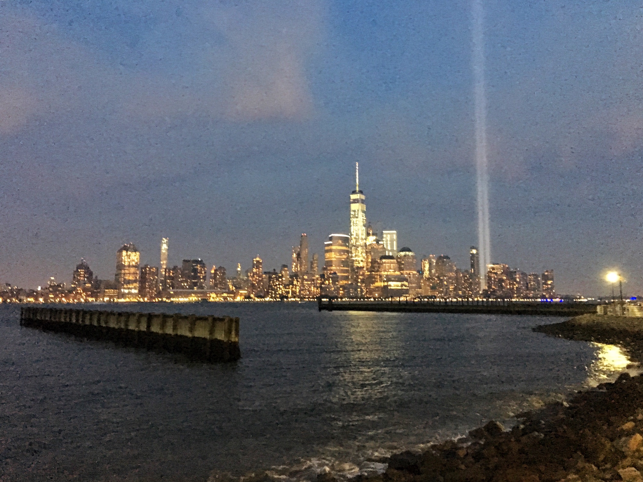 夜景。因为恰逢911,所以亮起了象征双子塔的纪念光束。