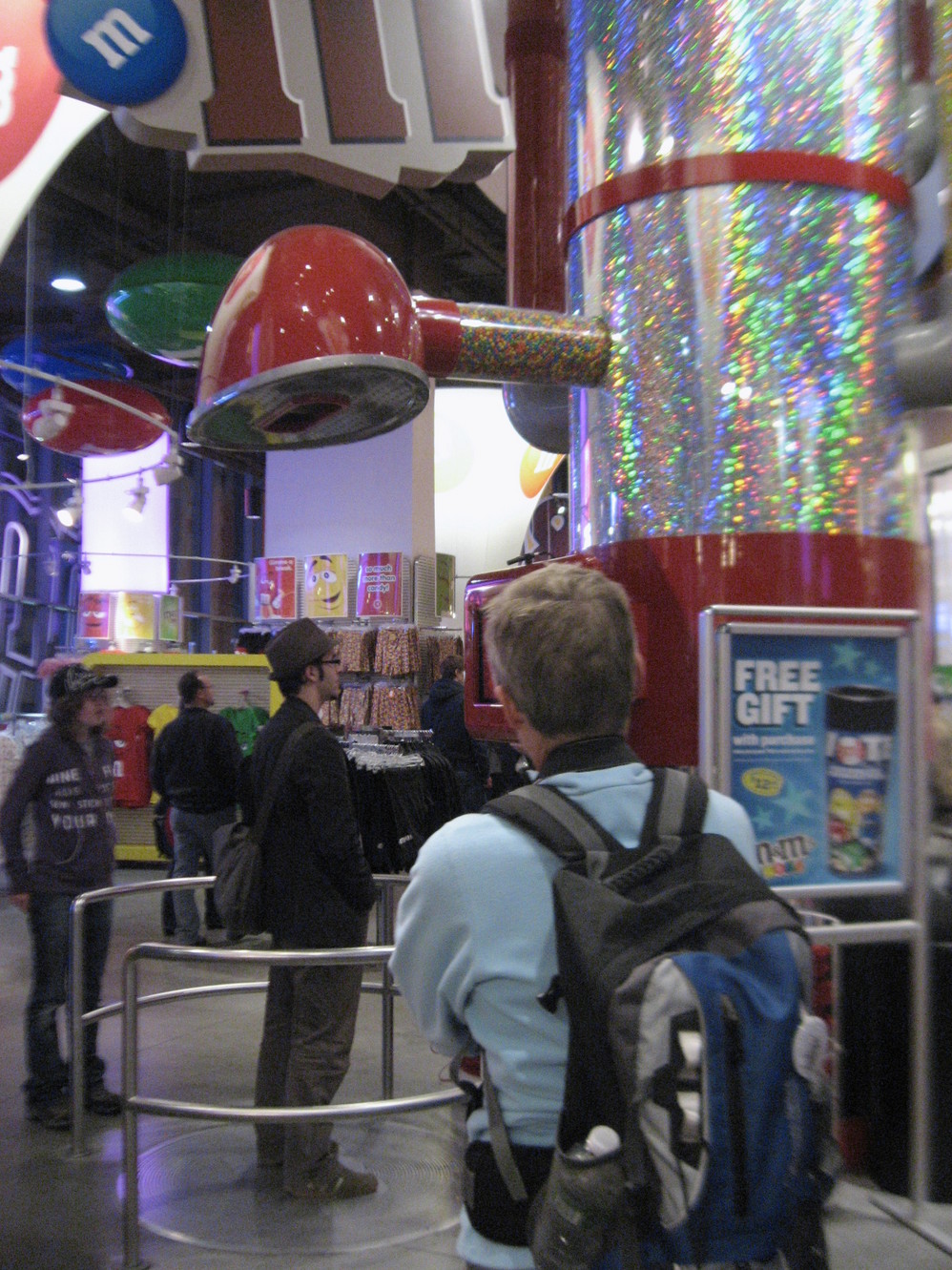 这个机器很好玩,人站在下面他会帮你算出你是哪种颜色的M&M,真是老外什么推荐手段都想得出来,不管大人小孩都喜欢在上面站站,测试一下。。。