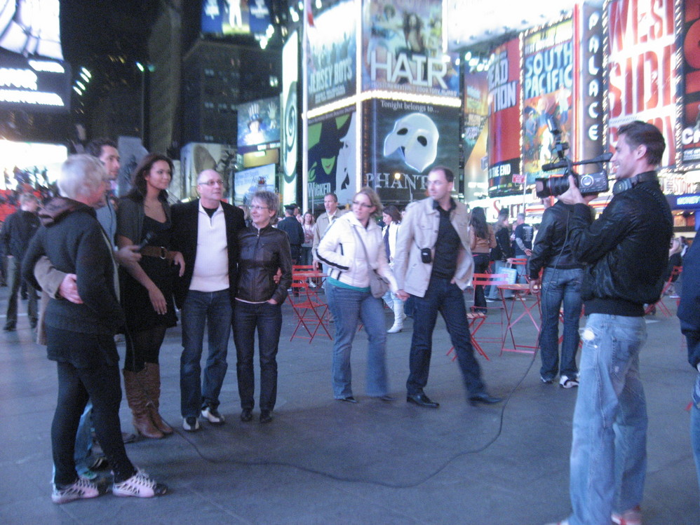 路上碰到不知道哪个国家的电视台采访,应该是个旅游节目,问路人觉得时代广场(/poi/17512.html)怎么样,老外声情并茂的讲。。。I LOVE IT !