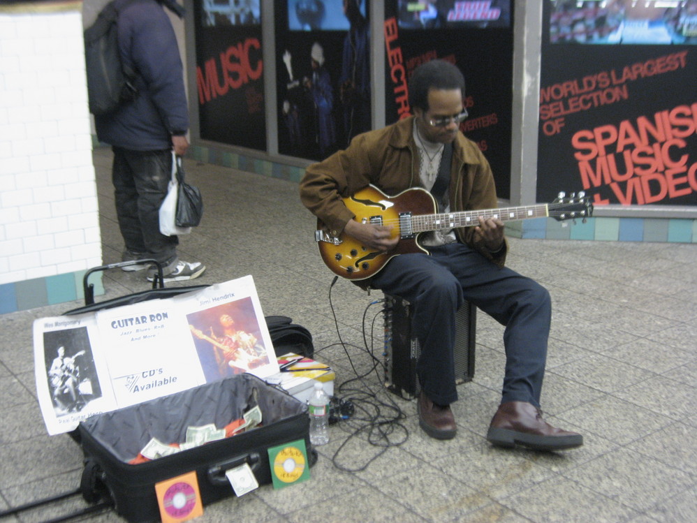 地铁站下的街头艺术家,唱JAZZ,我站在那里听了几首歌,捧杨买了个CD。。。很不错很好听!