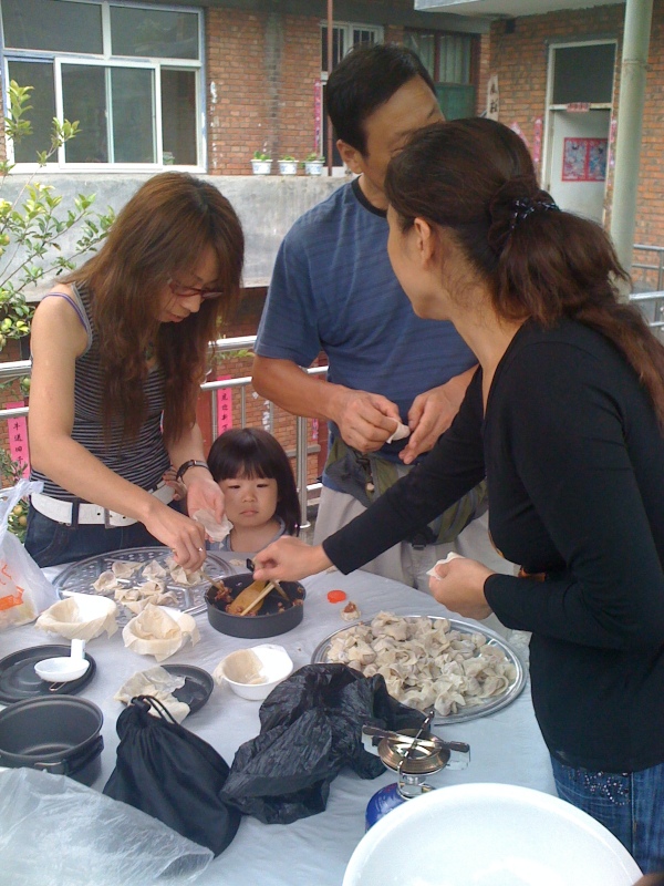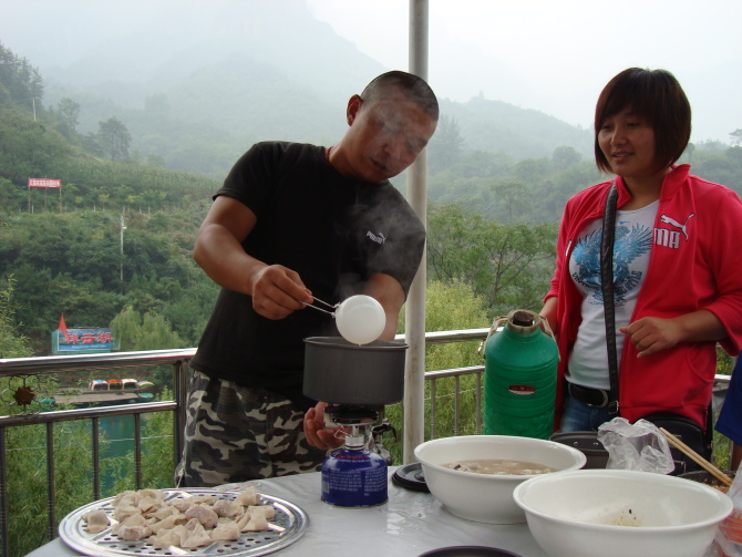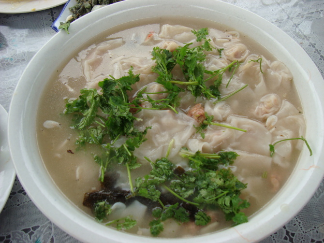 中午在一家叫做白雪谷饭庄的饭馆吃饭。吃饭平台的下边就是祥云湖。在一阵子洗洗唰唰之后,我们开始包混沌了。河南的陷河南的皮儿,山西的味儿。啥也不说了直接上图。