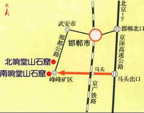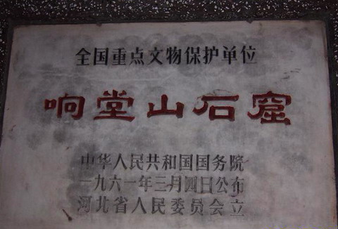 响堂山石窟属全国重点文物保护单位,位于邯郸市峰峰矿区鼓山,分南北两处,相距约15公里。因石窟群在山腰,人们谈笑、拂袖、走动均能发出铿锵的回声,故名响堂山石窟。响堂山石窟是中国北朝晚期至明代佛教石窟寺。始凿于北朝晚期,隋、唐、明各代相继修造。现存石窟17座,摩崖造像 450余龛,大小造像4300余尊。窟龛早有损坏,许多造像头部损失,有的流落于境外。