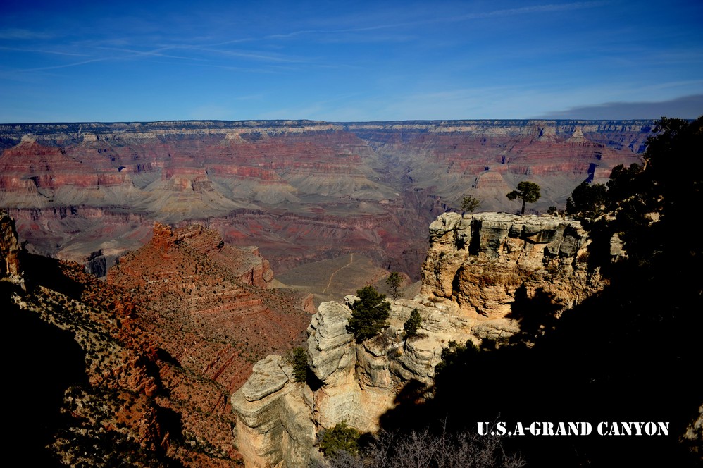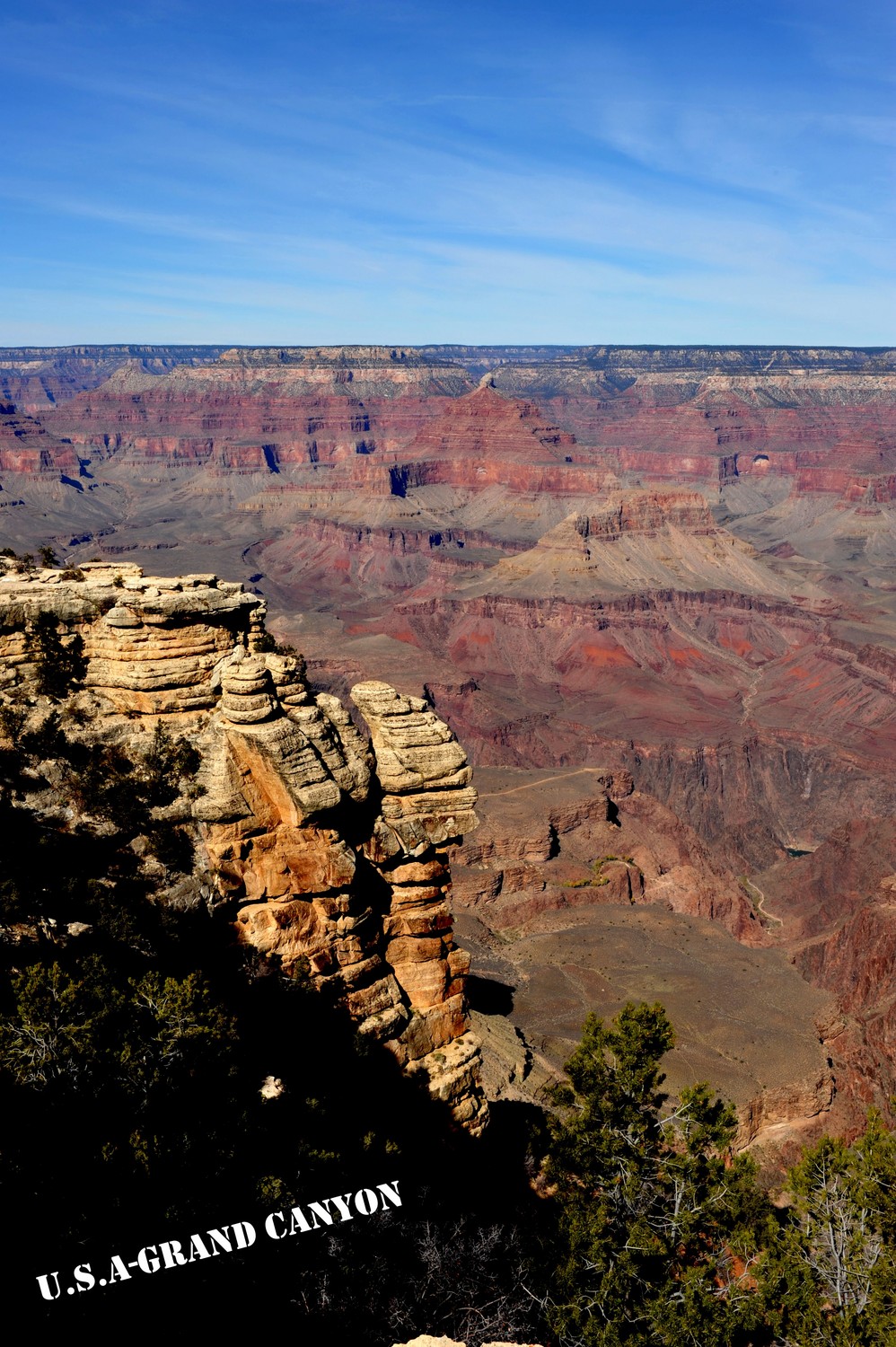 这是看见大峡谷 的第一眼,貌似只在书刊上看过的景象,就这么直接铺开在自己的眼前。